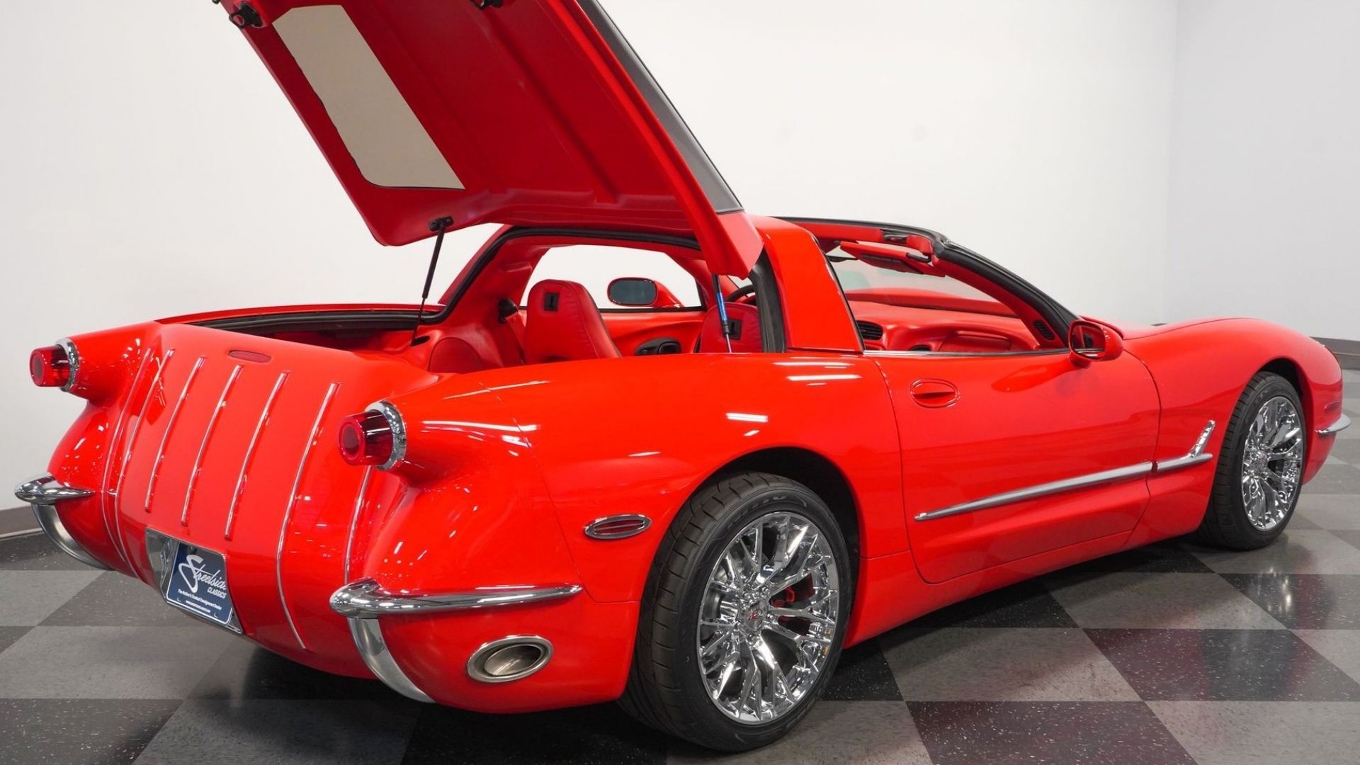 The car underneath isn’t just any old Corvette, but instead is a 50th Anniversary Commemorative Edition car. To some it might seem like a bad thing to modify an already rare ‘Vette, but to others they’ll appreciate the connection to America’s sports car’s anniversary and the concept.