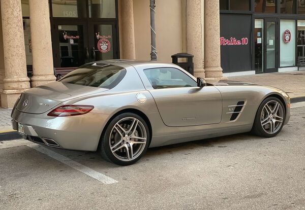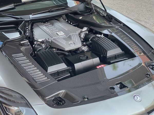 This is a 2011 Mercedes Benz SLS AMG with a ton of power under the hood and plenty of interior and exterior styling to match. Sending torque directly through the Speedshift seven-speed automatic transmission is a monstrous 6.2-liter V8 engine that provides a refreshing break from low displacement, high cylinder, torque lacking engines that usually come in modern European sports cars. That massive power plant can push out an incredible 563 horsepower and 479 ft/lbs of torque which is more than enough to beat any other Mercedes, Porsche, or VW on the streets of Germany.