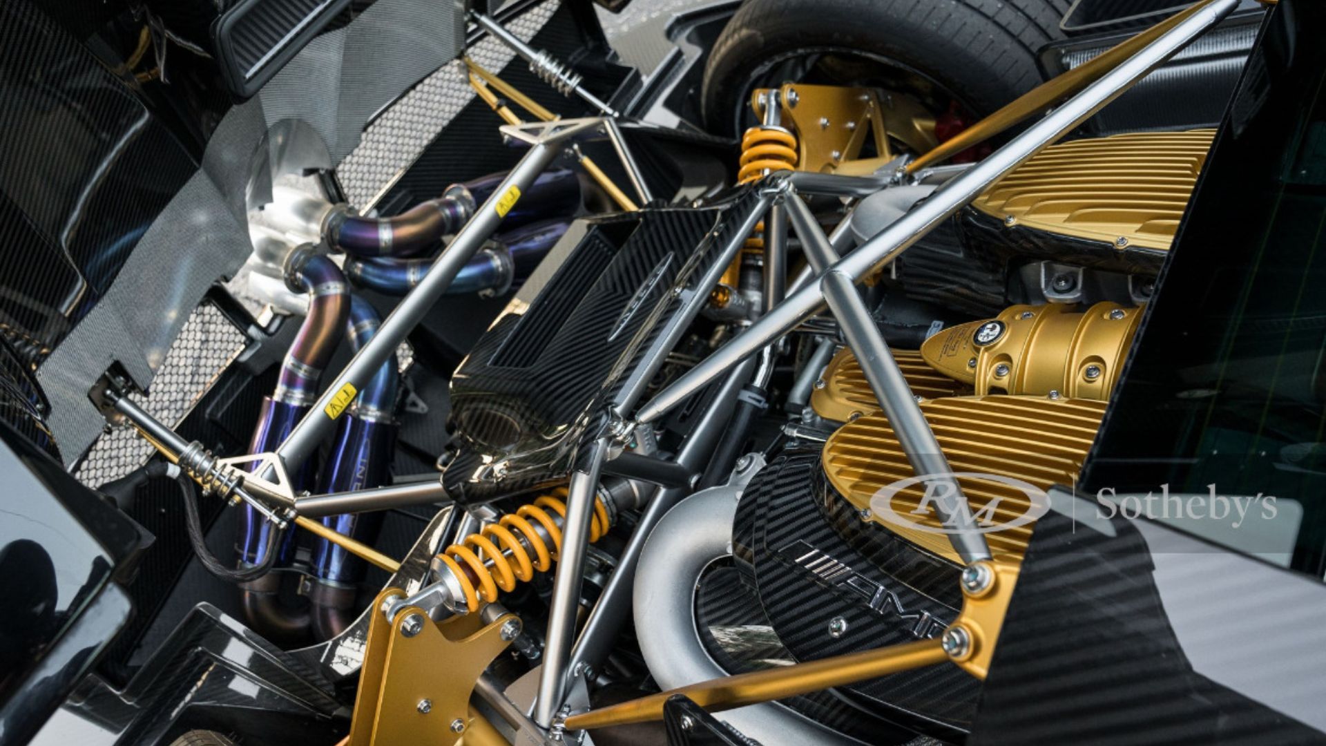There’s more to the Pagani Huayra than just extreme performance. It’s a thing of exclusivity, this being the 56th of only 100 bespoke examples crafted by the boutique Italian automaker. While you can see exposed carbon fiber of the body panels, you don’t as easily see the carbo-titanium monocoque which provides the rigidity to rival such power. Computer-controlled flaps each one operating independently and located at the four corners of the vehicle, can provide more downforce, reduced drag, or lessen body roll during cornering as they change positions.