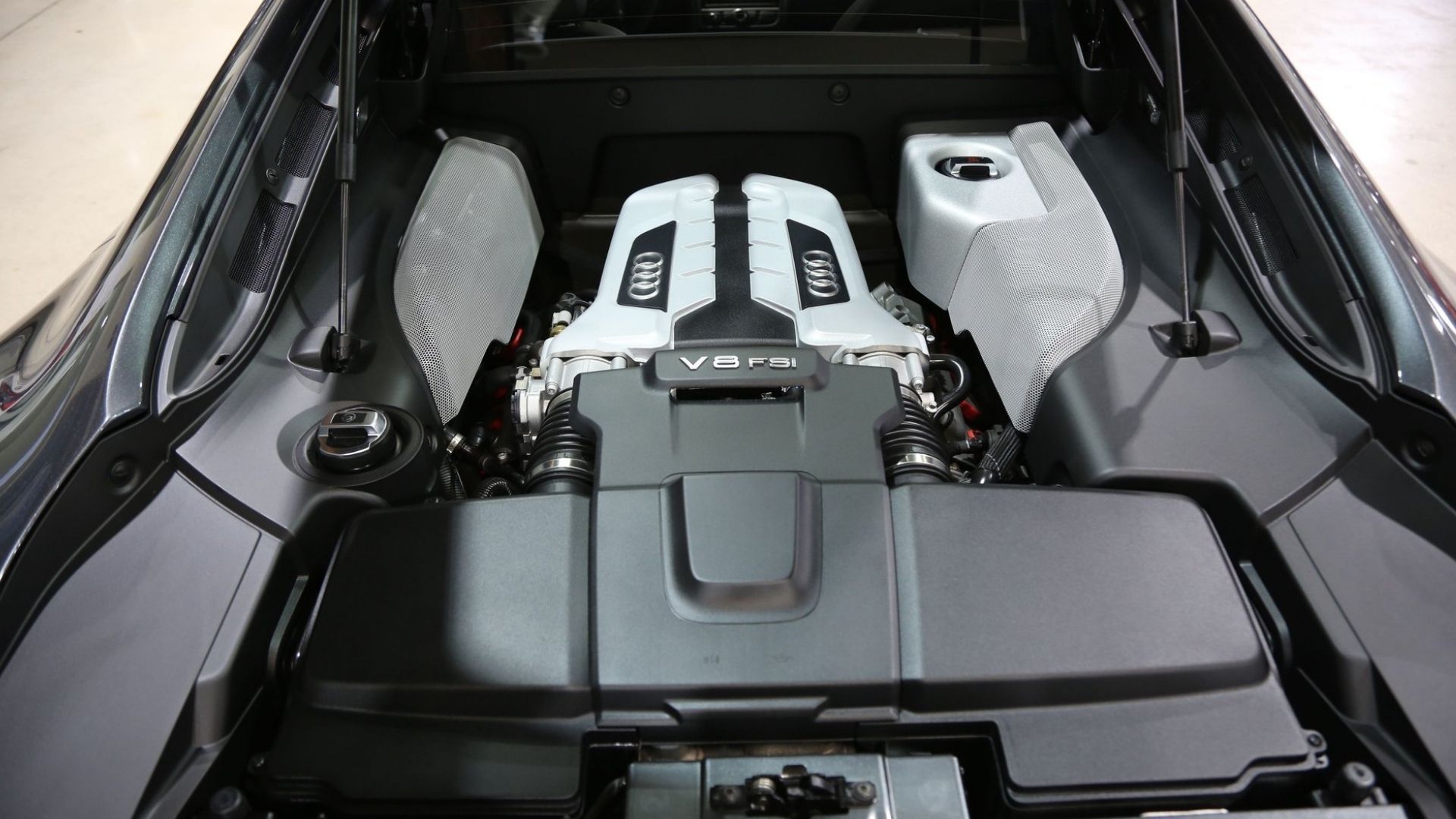 The cockpit is accented by the Carbon Fiber Interior Accents while the Bang & Olufsen Premium Sound package will keep you entertained, if you ever get tired of hearing the V8 behind you. A flat-bottom steering wheel adds to the race car-inspired feel of this ride. Other premium features like leather upholstery, power equipment, etc. keep you nice and comfortable, just like what you’d expect from any Audi.