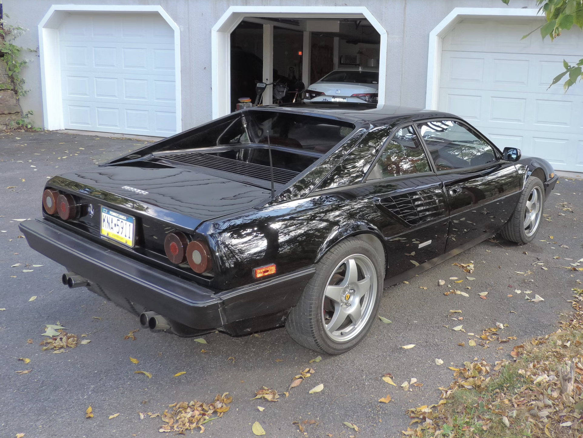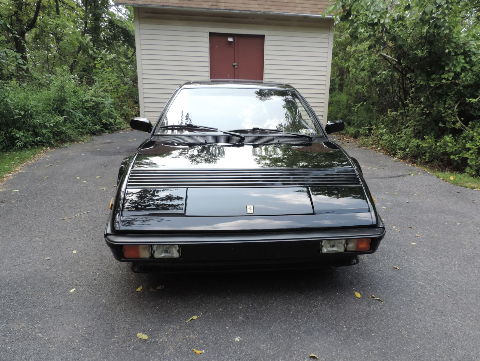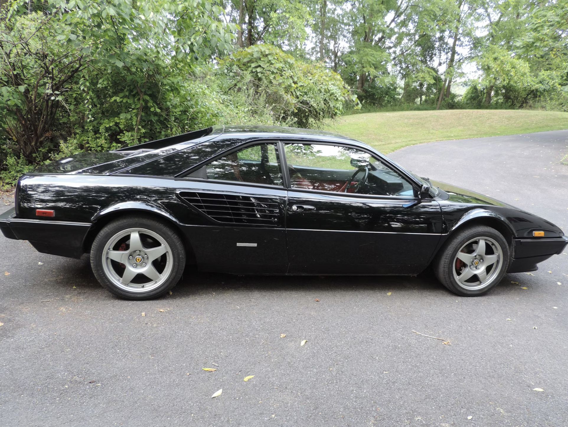 This particular 1981 Ferrari Mondial 8 shows 30,800 miles and carries a clean Carfax report. Originally finished in gray over brown leather, it was later refinished in black with red leather upholstery. Power comes from the mid-mounted 2.9-liter V8 mated to a five-speed manual gearbox, sending power to the rear wheels through a classic gated shifter.