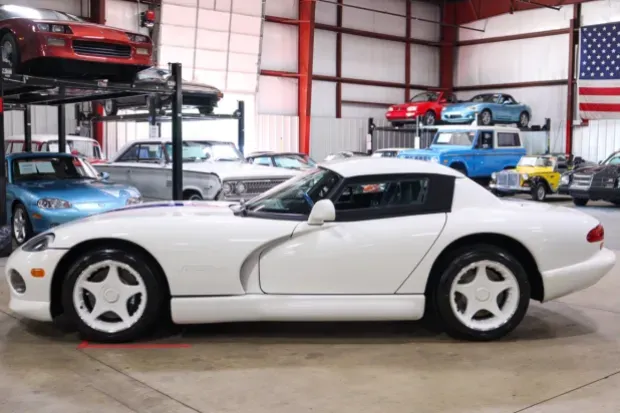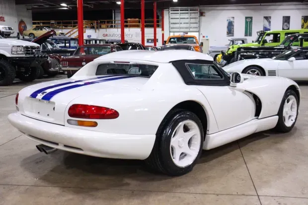 Visually, the Viper captures the imagination with its distinct features like the forward-opening clamshell hood and the center-exit dual exhaust outlets. Fog lights come standard, and the car includes both a removable hardtop and a removable soft top, offering a customizable driving experience. While the car is in exceptional condition, it's worth noting that there's a minor scratch on the front valance, a detail that has been meticulously documented in the gallery of photographs accompanying the vehicle's listing.