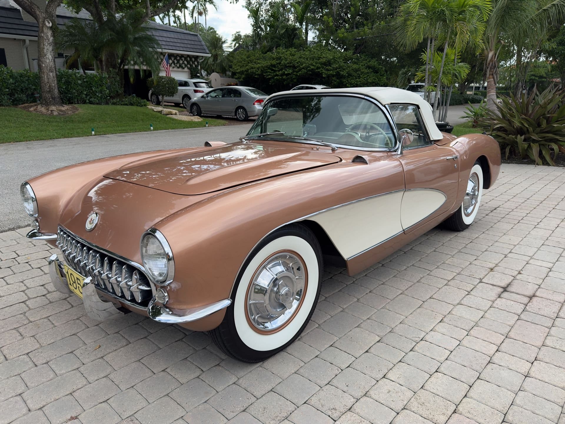 Feast your eyes on this meticulously restored 1956 Chevrolet Corvette, a true classic that embodies the spirit of American sports cars. With its original Aztec Copper color, one of only 402 in this shade, and a Beige interior, this Corvette stands as a rare gem among its peers. The car has been part of a private collection for over 25 years and boasts a numbers matching 265ci/225hp V8 engine and Powerglide transmission, both recently restored. This model, a significant part of Corvette's history, showcases the iconic "Cove" design and numerous first-time features, making it a coveted piece for collectors and enthusiasts alike. See it here.