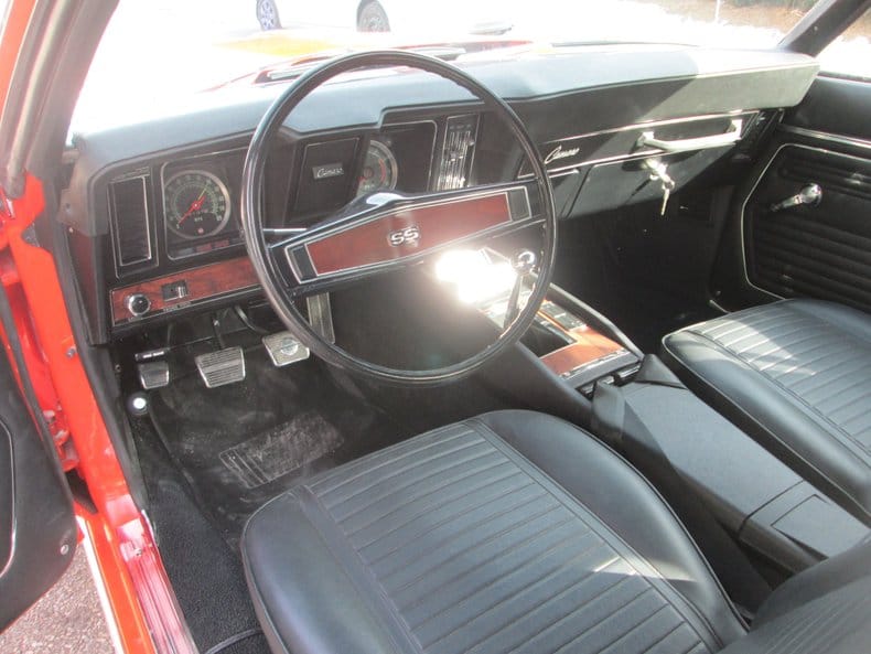 This Super Sport/Rally Sport example has been comprehensively restored, blending factory muscle with thoughtful upgrades for modern appeal. Under the cowl-induction hood lies a potent 396-cubic-inch V8, conservatively rated at 375 horsepower, paired with a Muncie 4-speed manual transmission and a 12-bolt rear end with 3.73 gears. Together, the drivetrain offers the kind of visceral performance that made the '69 Camaro a standout among late-’60s pony cars.