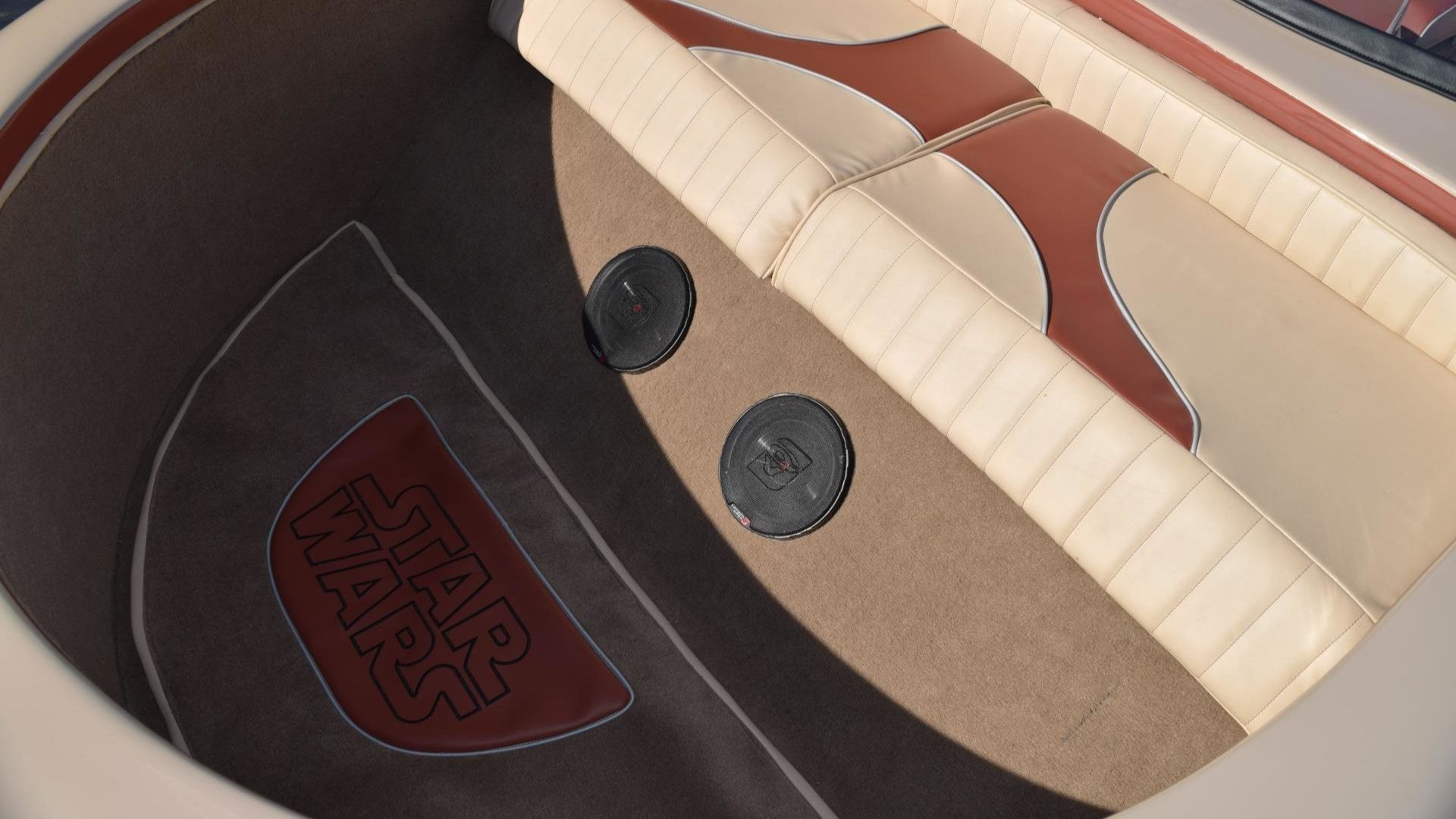 There’s seating for four in the main compartment. An open compartment in the nose has two more seats, although putting people up there might not be a great idea for some situations. Star Wars floormats add to the flair and clear things up for those who don’t know what this is.