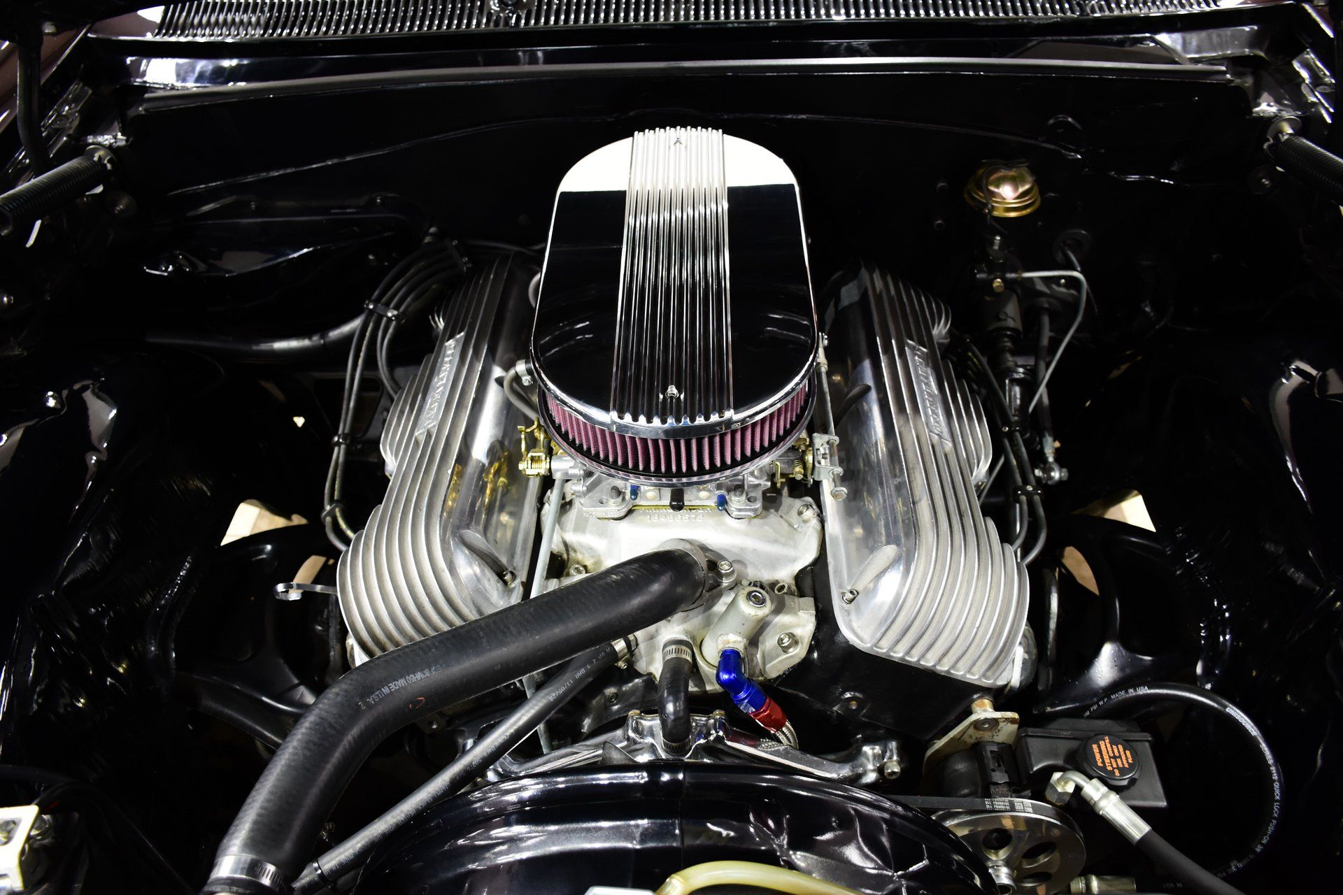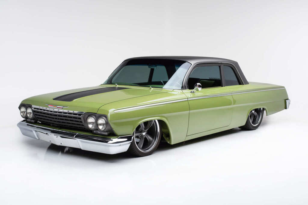 Although this gem features the 409 badging on the side, the big-block V8 offered for this model year, something more menacing lurks underneath the hood of this Impala. The 409-cubic-inch V8 has been built into a massive and powerful 482-cubic-inch stroker. The 482ci is fed by two four-barrel carburetors and features a ISKY camshaft, forged crank, Offenhauser finned aluminum valve covers, and spent gases exit through electric exhaust cutouts. Power is sent down through a Posi-traction rear end stuffed with 3.31 gears via a 4-speed manual transmission that is mated to a Hurst Competition Plus shifter.