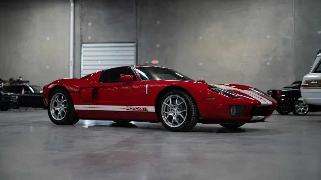 Embark on an exhilarating journey with the 2005 Ford GT, a striking Mark IV red masterpiece adorned with iconic white racing stripes, now up for auction. This modern classic is powered by a resolute aluminum 5.4L supercharged V8 and 6-speed transaxle, promising a thrilling performance on the road. Impeccable in every detail, from its aerodynamic design to the McIntosh stereo system, it pays homage to the legendary GT 40 that triumphed at the 24 Hours of Le Mans. Despite facing a flood, this resilient masterpiece emerged unscathed, boasting no engine damage and maintaining excellent running and driving condition. With a branded title, this Ford GT stands as a unique and enduring piece of automotive history, presenting a rare opportunity to make it yours. Mileage: a mere 9,2xx miles.