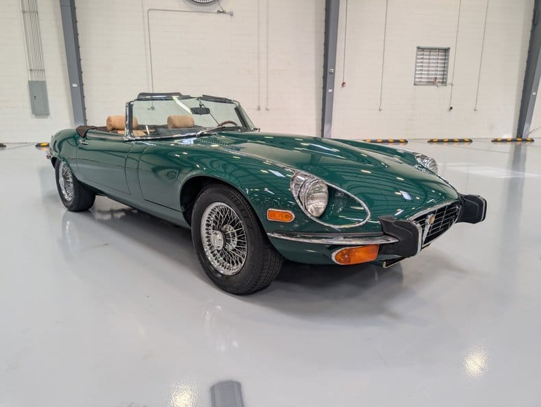 Also part of the Petty collection is a 1973 Jaguar XKE, finished in British Racing Green with a brown interior. Powered by a 5.3-liter V12 producing 272 horsepower, this E-Type represents one of the last and most refined evolutions of Jaguar’s legendary sports car. It features a 3-speed automatic transmission, factory air conditioning, chrome wire wheels, and both a soft top and matching hardtop. Inside, front bucket seats, a wood-grain steering wheel, and a cassette player complete the period-correct atmosphere.