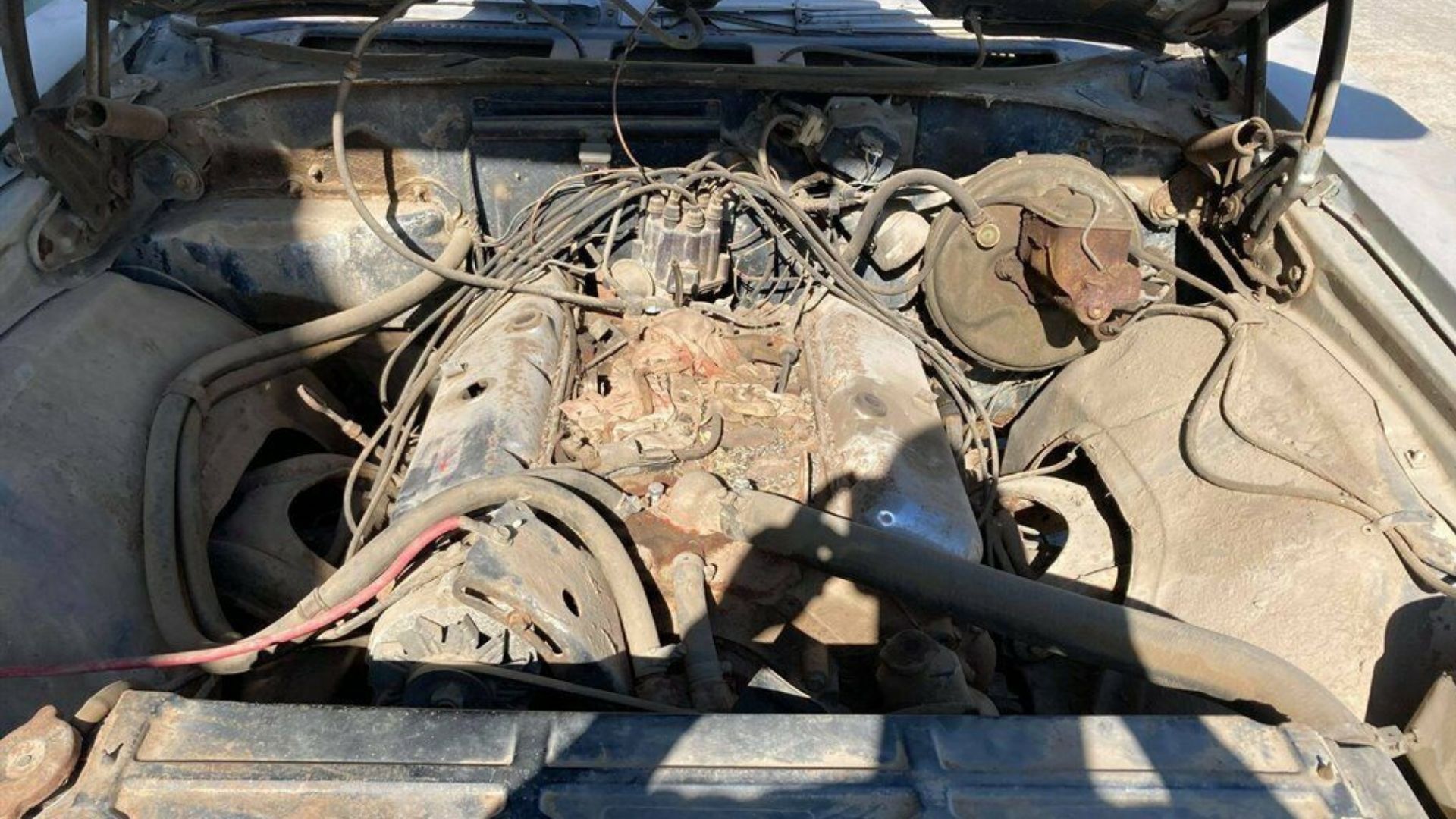 Now, for the good. This ‘70 Chevelle has a functional cowl induction hood and F41 suspension from the factory. It also comes with power front disc brakes and power steering. Somehow, the original water pump is installed, which combined with the dirty exterior could back up the claim of only 86,729 original miles for this barn find-condition muscle car. This Chevy also comes with bucket seats and a center console in a remarkably clean and damage-free interior.