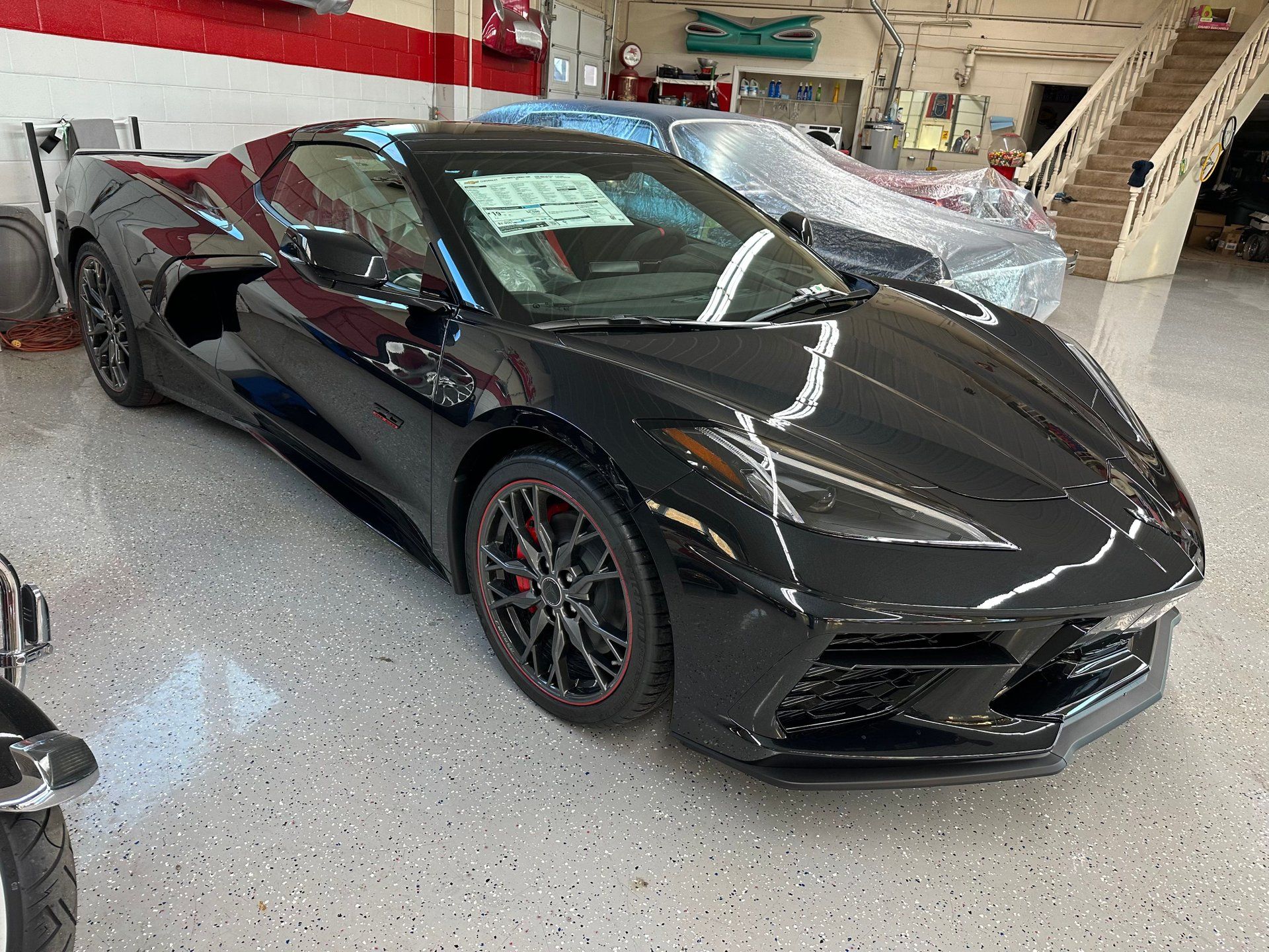 Built in 2023, this car is a sleek black recreation of everything that made the ‘Vette name popular in the first place. It’s fast, it’s fun, and oh boy does it look mighty good. A lot of this has to do with the black and red color scheme which compliments the car’s style very well. On the body you can clearly see the black paint cover every corner in mystery while the red-line wheels provide a subtle personality.