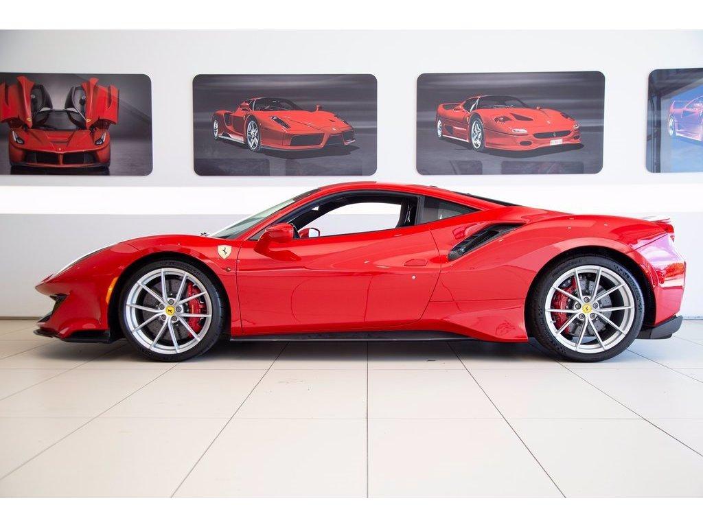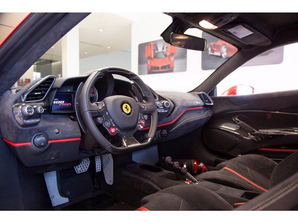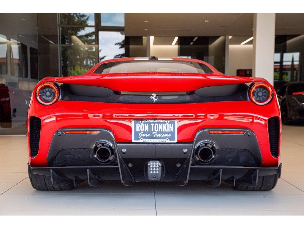 Ron Tonkin Gran Turismo is offering Ferrari buyers the opportunity to own a prime 2020 example of the 488 Pista through its Ferrari Approved Certified Pre-Owned Program. This particular car is finished in Rosso Corsa with an Argento Nurburgring and dark blue PNT3 exterior stripe and exposed carbon fiber accents. A set of 20-inch forged wheels and red brake calipers put the finishing touches on the car's exterior.
