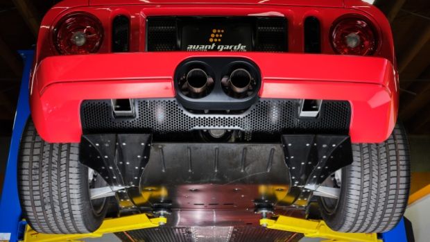 Built as a performance powerhouse, the 2005 Ford GT’s heartbeat is supplied by 5.4-liter V8, topped with a twin-screw Eaton supercharger. With this setup, the car generates 550-horsepower and 500 lb/ft of torque and is shifted via a Ricardo 6-speed manual transmission. Functional rear scoops feed air into the hungry engine, and a helical limited-slip differential transfers the power to the ground. A stiff construction is necessary for a car of this caliber, so the car was given a lightweight aluminum space frame and body.