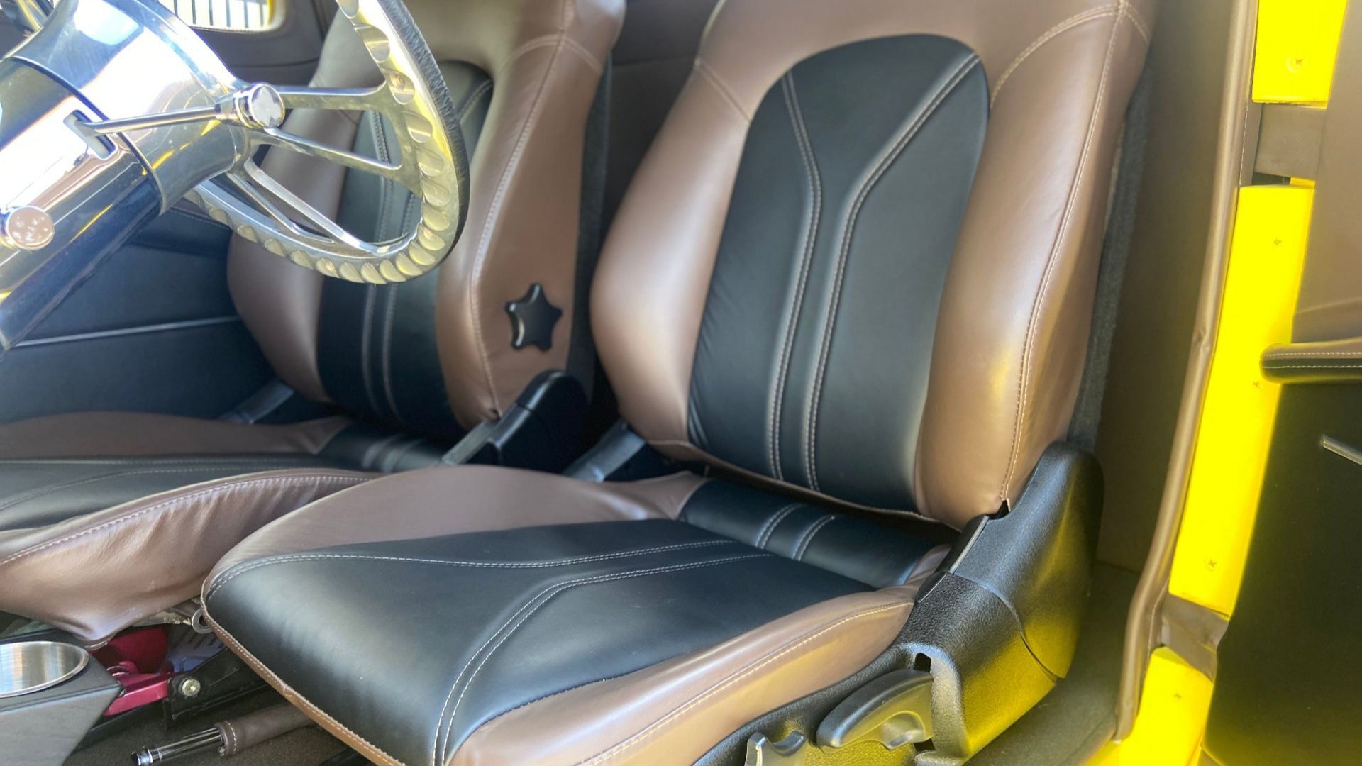 While performance is obviously a priority with this build, that’s not to say the interior will make you suffer. Instead, you get soft leather with two-tone brown and black bucket seats for plenty of comfort. The chrome billet steering wheel and shifter add to the customized feel, while VDO performance gauges are easy to reference while driving. Air conditioning, power windows, and a power trunklid pretty much spoil you.