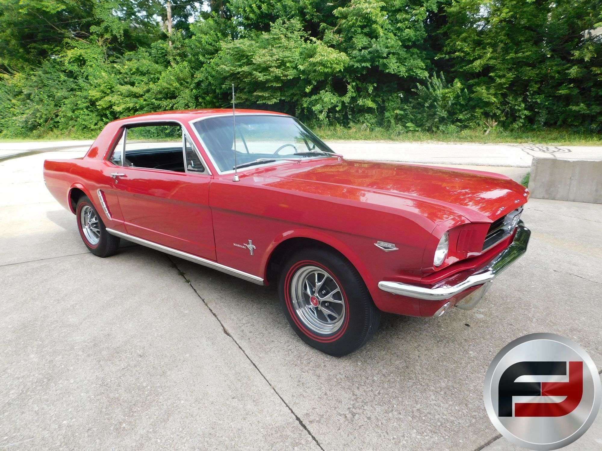 The 1965 Ford Mustang is the pony car that started it all. This stunning red Ford Mustang is from the first generation, and it is powered by a 289 cubic inch V8 engine, which is backed by an automatic transmission. It rolls on steel wheels and you can see it here.