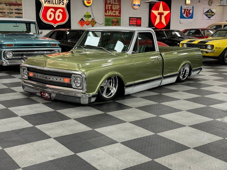 Discover the revamped 1972 Chevrolet C10, a seamless fusion of vintage charm and modern prowess. Beneath its classic exterior lies a roaring 6.2L Supercharged LSA Engine, complemented by a 4L80 Automatic Overdrive Transmission. With an AccuAir Air Management system, Porterbuilt Front Clip, and a 6 Link Rear Suspension, this C10 ensures a ride as smooth as its look. Its aesthetic brilliance extends to Billet Specialties Talladega wheels, a custom two-tone interior, and a stunning Red Oak Wood bed. Modern Dakota Gauges, Vintage A/C, and a Billet Steering Wheel complete this masterpiece. Experience the legacy reimagined. See it here.
