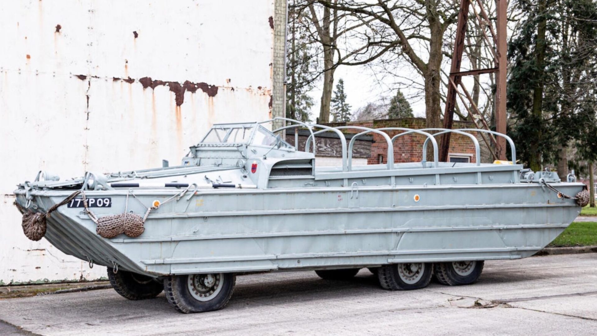 This particular GMC DUKW will cross the auction block at Bonhams’ MPH March Auction on March 20. It’s estimated to fetch between $25,000 and $28,000 USD. According to the lot listing, it’s been serviced and maintained by military engineers and was in service with the 19 Amphibious Squadron of the Royal Corps of Transport. It might have been part of the D Day invasion, although no records of it doing so exist.