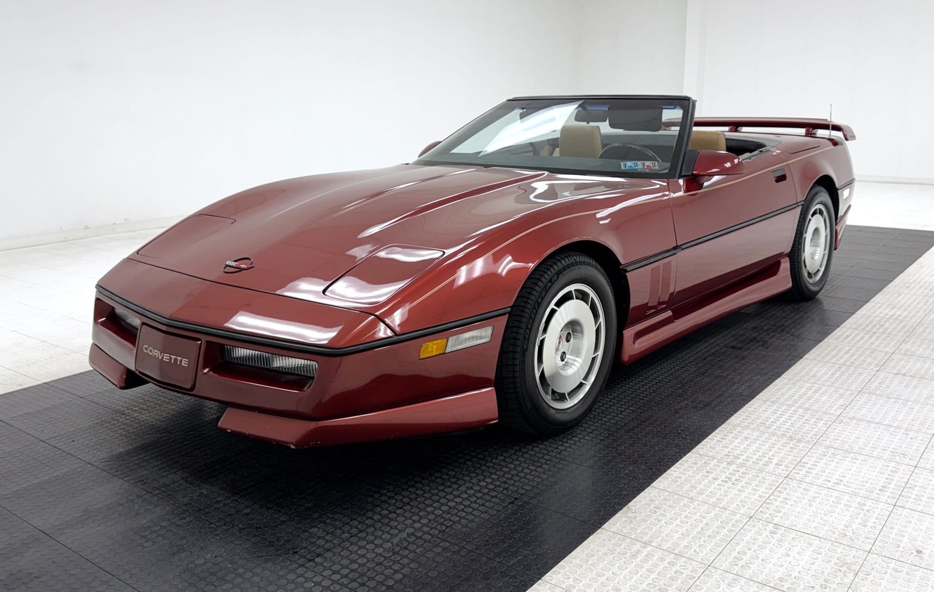 A modified 1986 Chevrolet Greenwood Corvette convertible is being presented for sale, offering a distinctive take on the fourth-generation Corvette shaped by one of the most recognizable aftermarket names of the era. Showing 16,717 miles, though true mileage is noted as unknown due to exemption, the car reflects a period when bold aerodynamics and race-inspired styling were central to Corvette customization.