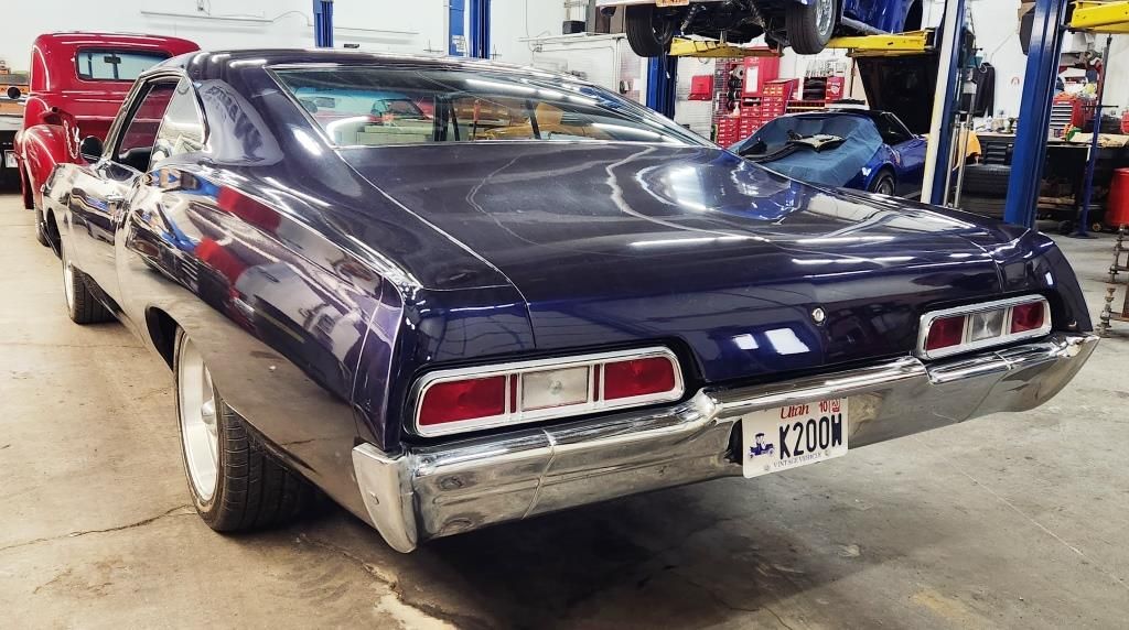 If you're a fan of classic Chevrolet automobiles then you'll know about the gorgeous 1967 Chevrolet Impala. One of the car's most eye-catching and iconic design stages, This Impala was all about its Coke bottle shape combined with excellent performance when compared to practically anything in competition with it. This particular example boasts a beautiful dark purple paint job which contrasts incredibly well against the Chrome bumpers and trim. On top of that, it's an SS and both a 502 cubic inch V8 engine connected to a Th400 automatic transmission. That drivetrain is a winning combination that just spells out power no matter who's behind the wheel.