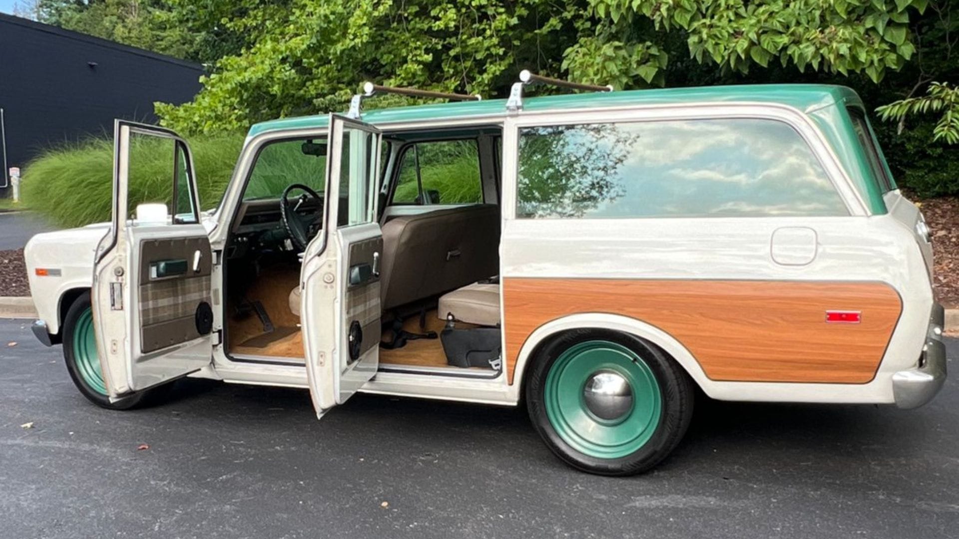Finished in an understated yet classic style, it rides on 20-inch Wheel Corp steel wheels that add a subtle custom flair without sacrificing the Travelall’s utilitarian personality. A surfboard rack hints at its California roots — this was originally a West Coast truck, further adding to its appeal as a rust-free survivor. New weather stripping ensures a tighter cabin seal, enhancing comfort for long drives or weekend getaways.
