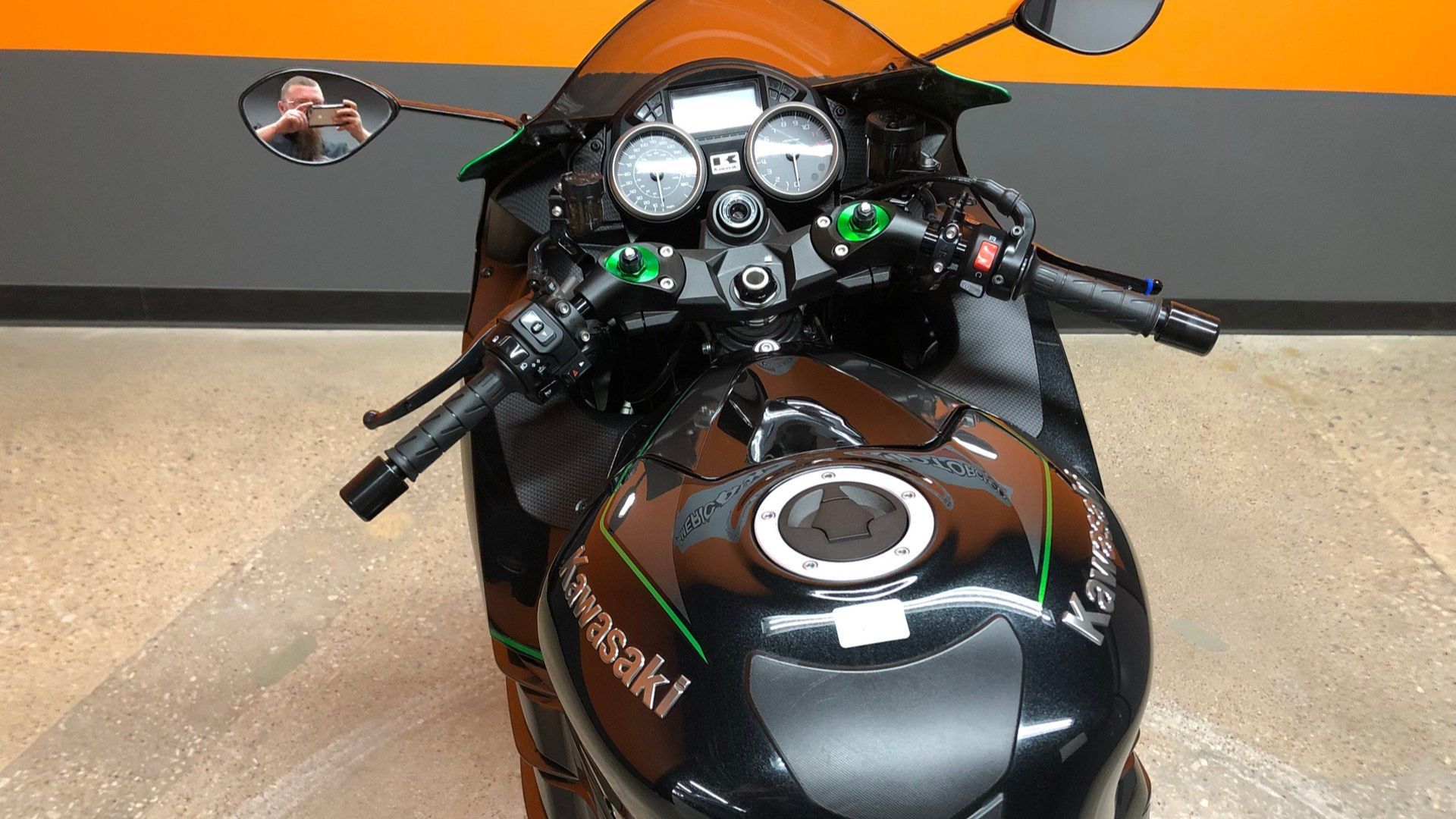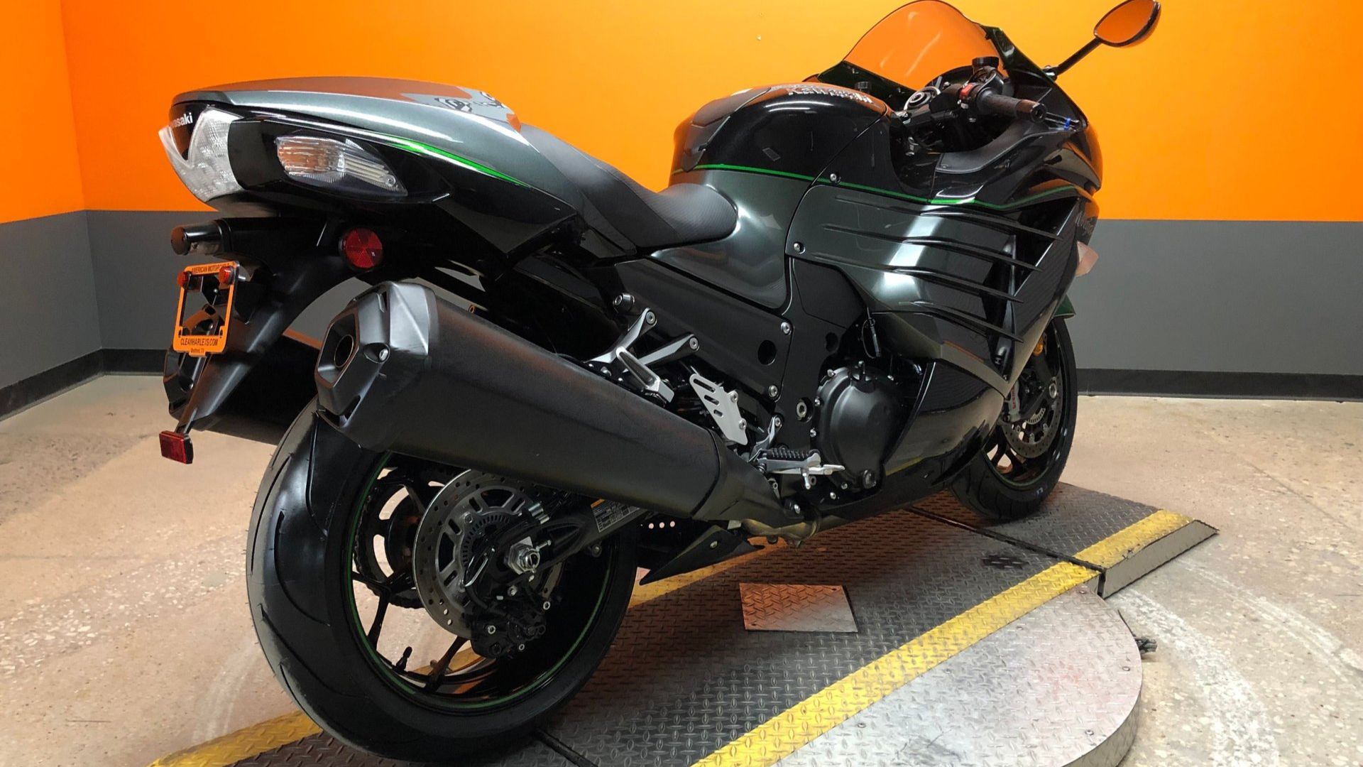 When it comes to the looks department, this Kawasaki has an overall stealthy appearance, suggesting a strong connection to its namesake. Instead of just a blacked-out appearance, the combination of Metallic Spark Black, Pearl Meteor Gray, and Emerald Blazed Green is appealing. This motorcycle presents well, but the dealer notes there are some scratches on the fairing and headlights, so it’s not perfect. The seat and controls look excellent, plus it’s rolling on new tires.