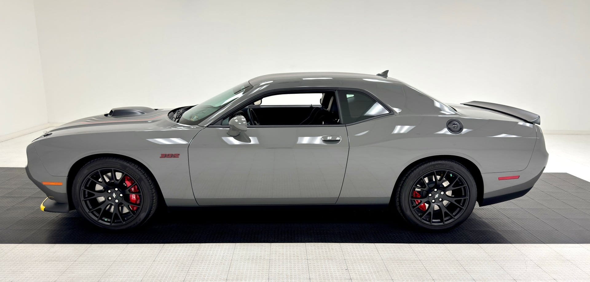 Beneath the hood lies a 392-cubic-inch Hemi V8 producing 485 horsepower, paired with an eight-speed TorqueFlite automatic transmission and 3.09 rear gears. The undercarriage remains pristine, with only minimal signs of road use, and factory Brembo brakes and active exhaust complete the mechanical package.