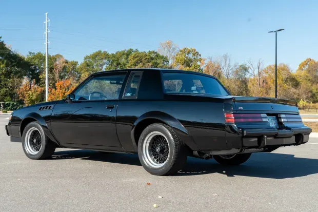 Finished exclusively in black like every GNX, the car retains the distinctive appearance elements engineered through Buick’s collaboration with McLaren Performance Technologies and ASC. The model was developed to close out production of the Grand National with a more aggressive, track-influenced package. Its exterior includes fender vents designed for heat extraction, composite wheel-arch flares, a three-piece rear spoiler and GNX badging. Additional features include an automatic power antenna, dual exhaust outlets and sport mirrors. The bumper filler panels were replaced in late 2024.