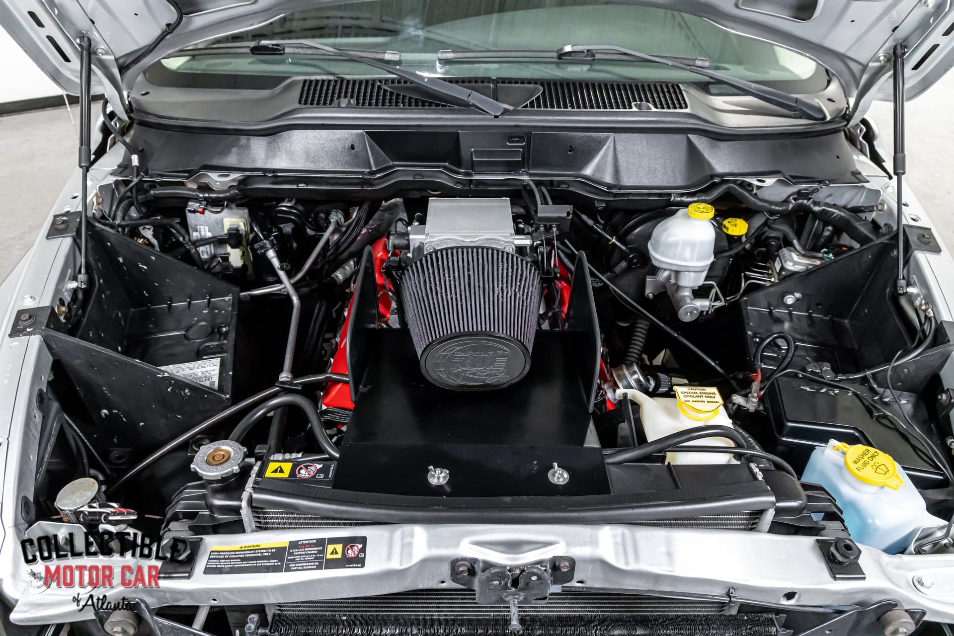 Originally developed during a period when automakers pushed unconventional performance concepts, the Ram SRT-10 paired a pickup truck platform with the same 8.3-liter V10 engine found in the Dodge Viper. This example builds on that already aggressive formula by adding a Roe Racing twin-screw supercharger system, significantly increasing its performance potential.