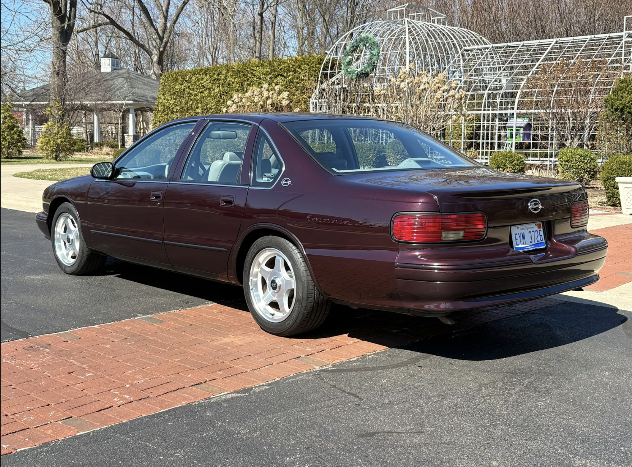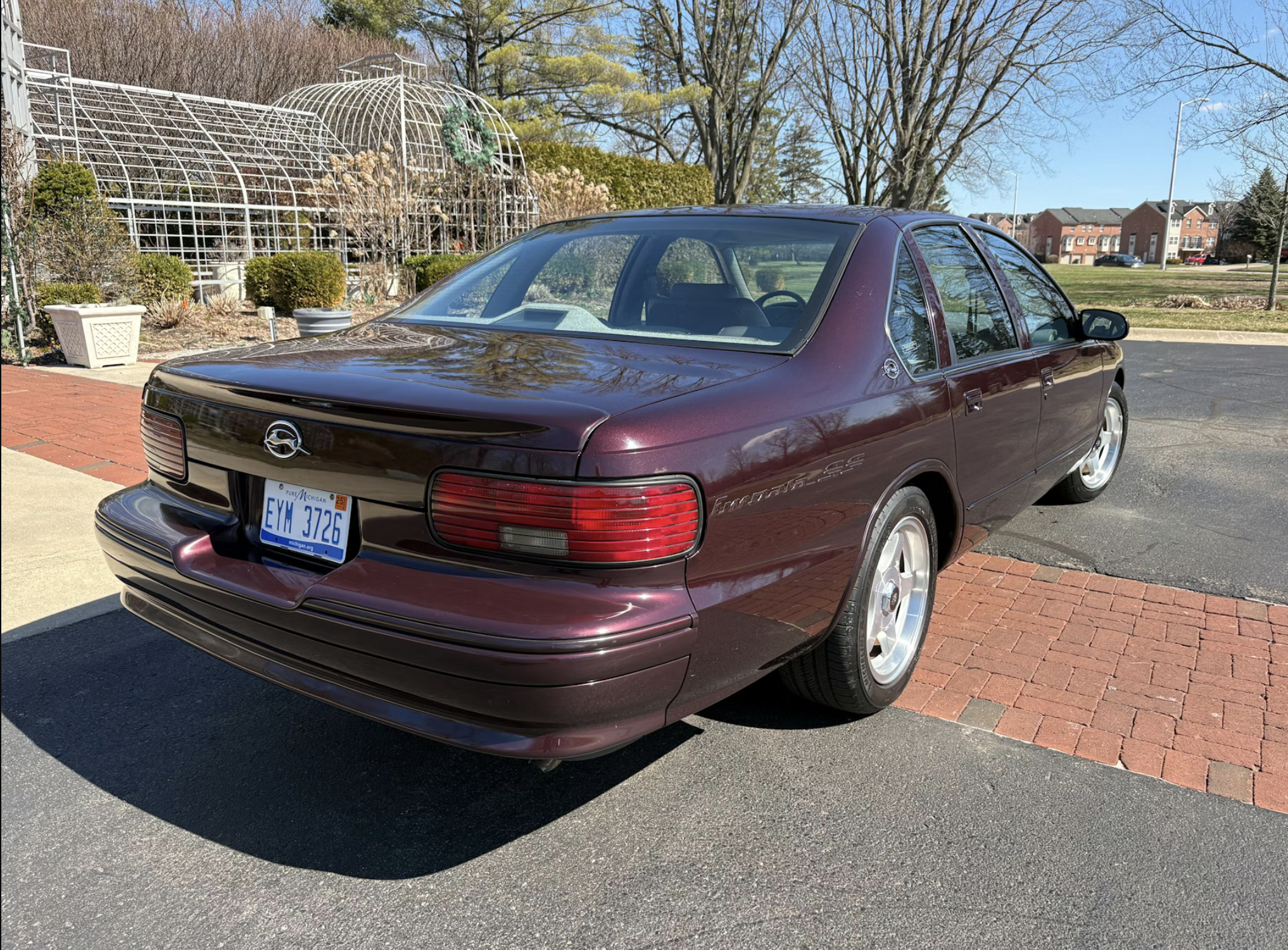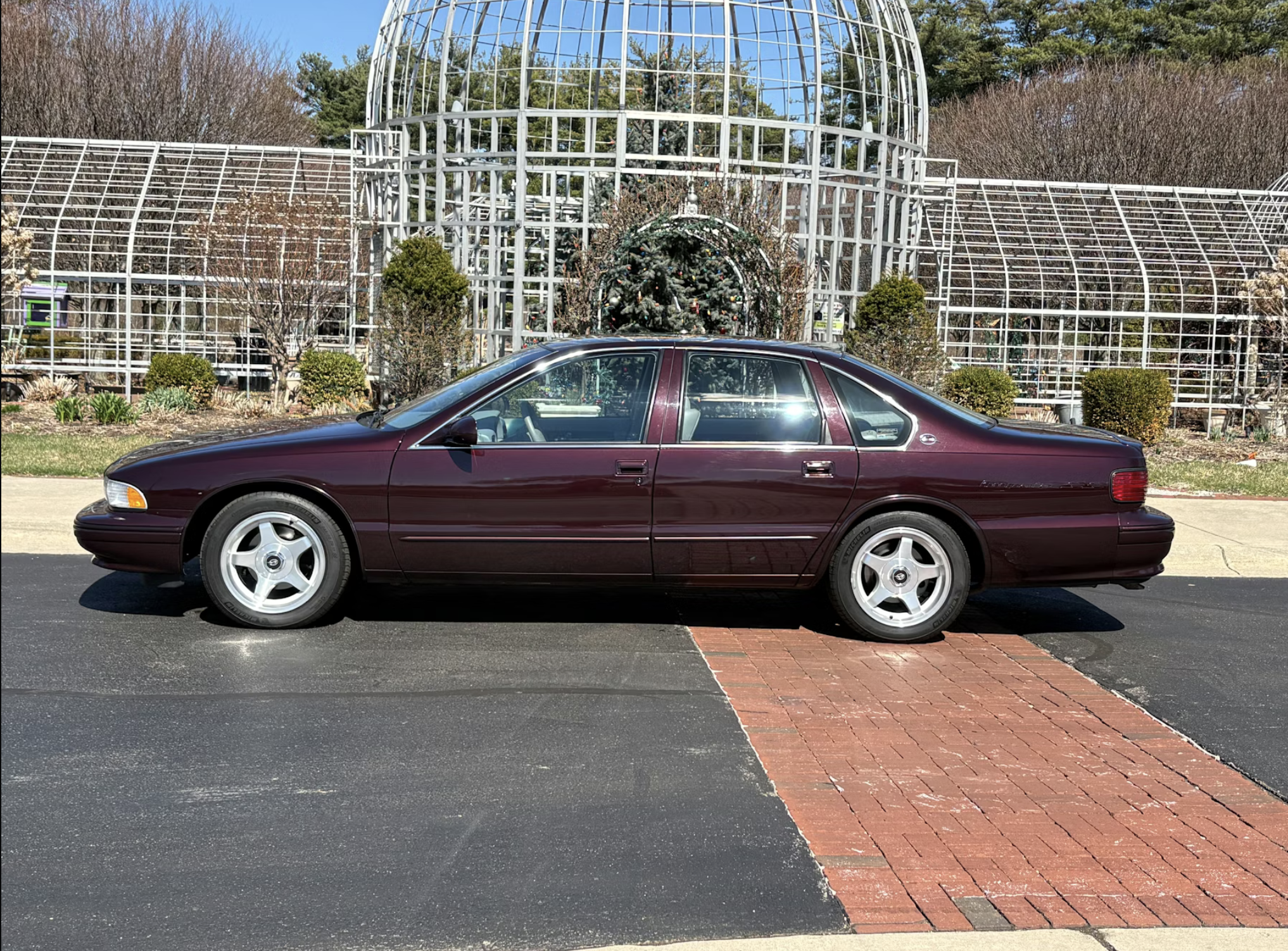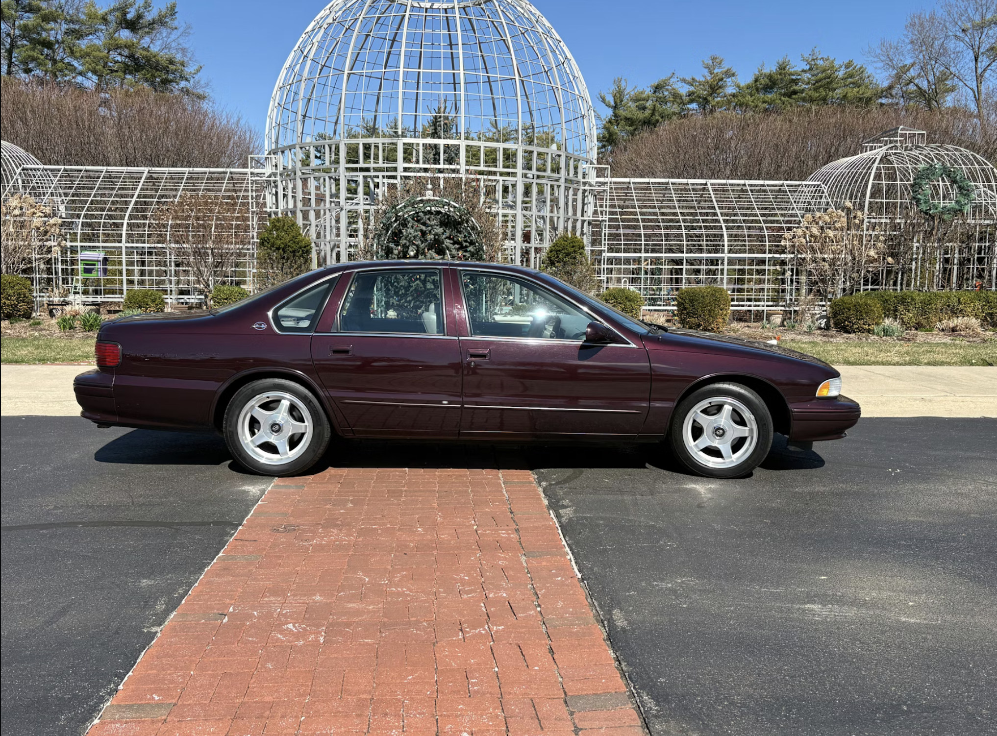 At the heart of the car is a 5.7-liter LT1 V8 engine producing 260 horsepower and 330 lb-ft of torque, paired with a four-speed automatic transmission. The setup delivered strong straight-line performance while maintaining everyday usability, a balance that helped define the model’s appeal during its production run. Chevrolet built more than 41,000 units for 1996, offering the car in a limited palette that included Dark Cherry Metallic, the color worn by this example.