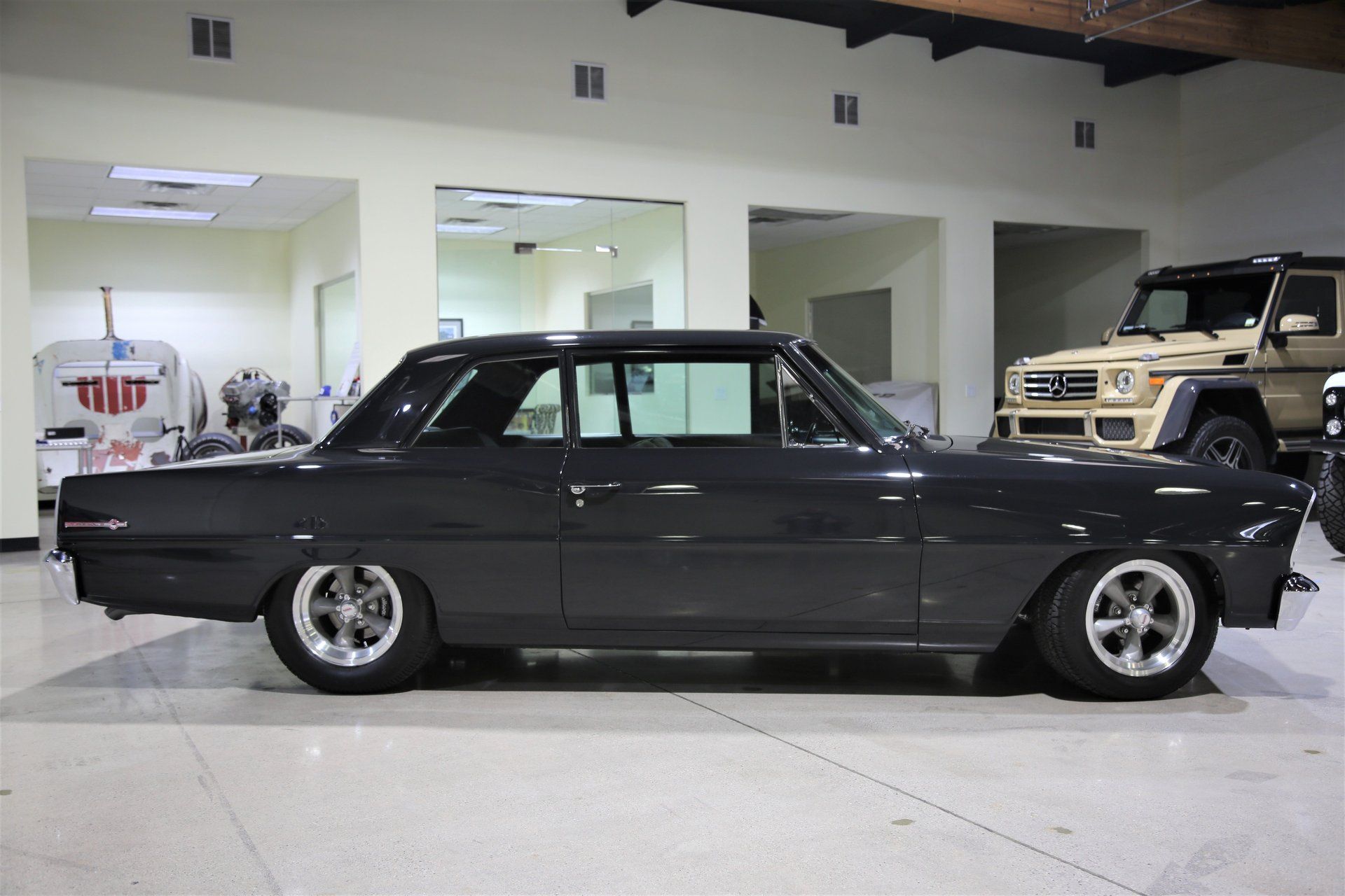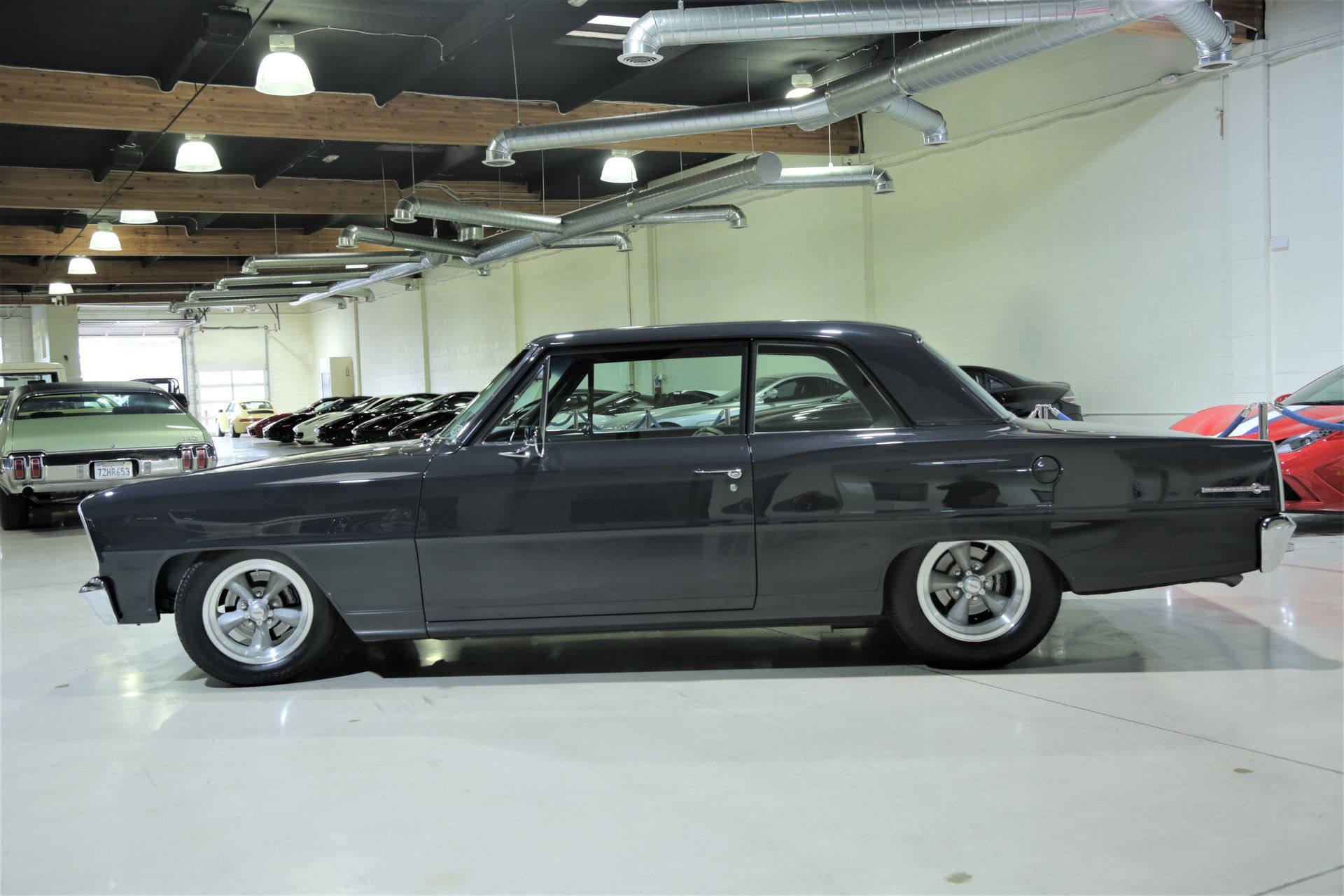 Even with the SS variants 300-horsepower 327 option the engine swap trend persisted into the second generation. Although I am not sure which engine this beautiful Slate Gray 1966 Chevy II Nova rolled off the lot with, but the current fuel injected LT1 power plant it sports now is obviously one of many upgrades it has received over the years.