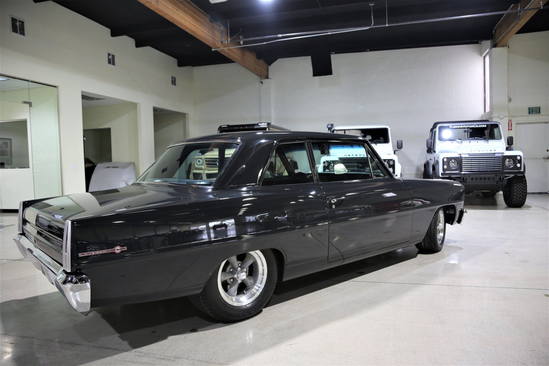 Controlling all that new found power is a set of Wilwood disc brakes, a rack and pinion style power steering, and what appears to be extensive suspension work. The interior is masterfully finished with black leather, A/C, and a custom radio install that is professionally and tastefully done. With a little over 2,600 miles on the build Fusion Luxury Motors is offering this beauty at a bargain of only $69,950.