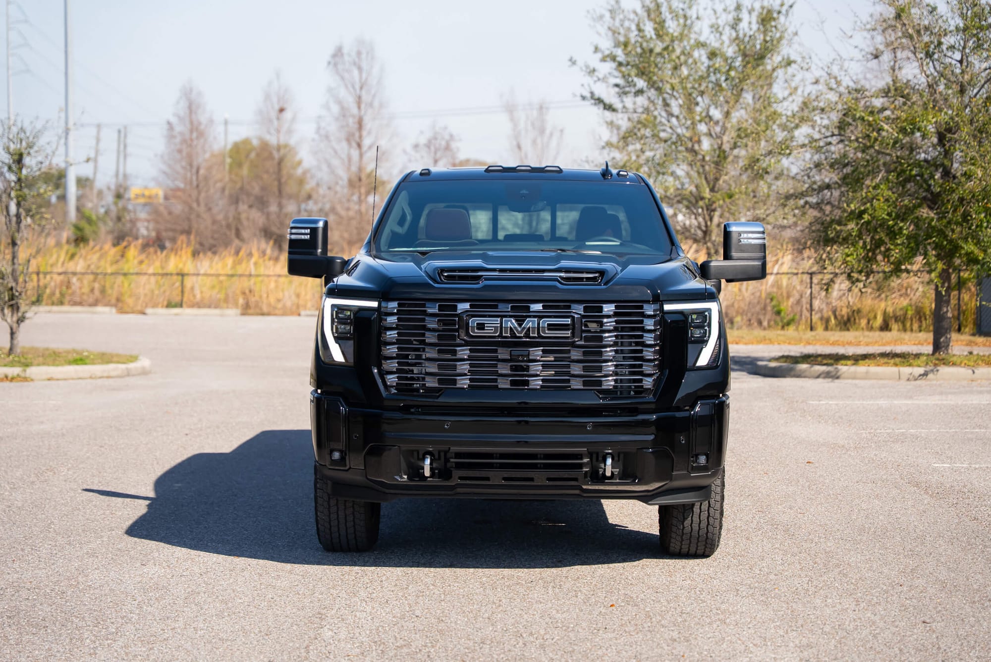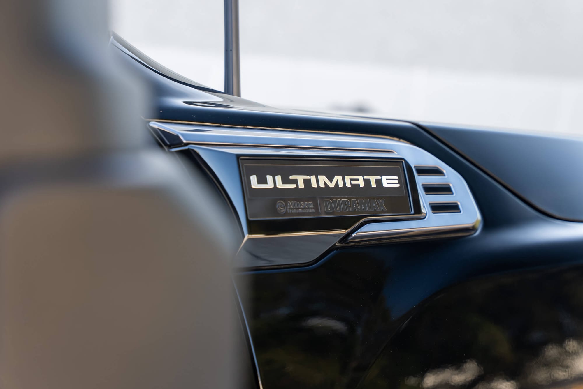 The Denali Ultimate trim represents the top tier of GMC’s heavy-duty lineup, blending work-ready engineering with elevated comfort and technology. This example is finished in Onyx Black and features an Alpine Umber interior, creating a striking contrast between bold exterior styling and a richly appointed cabin.