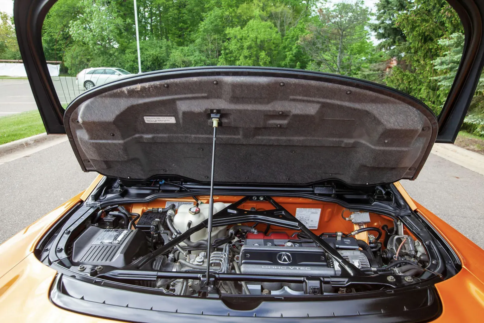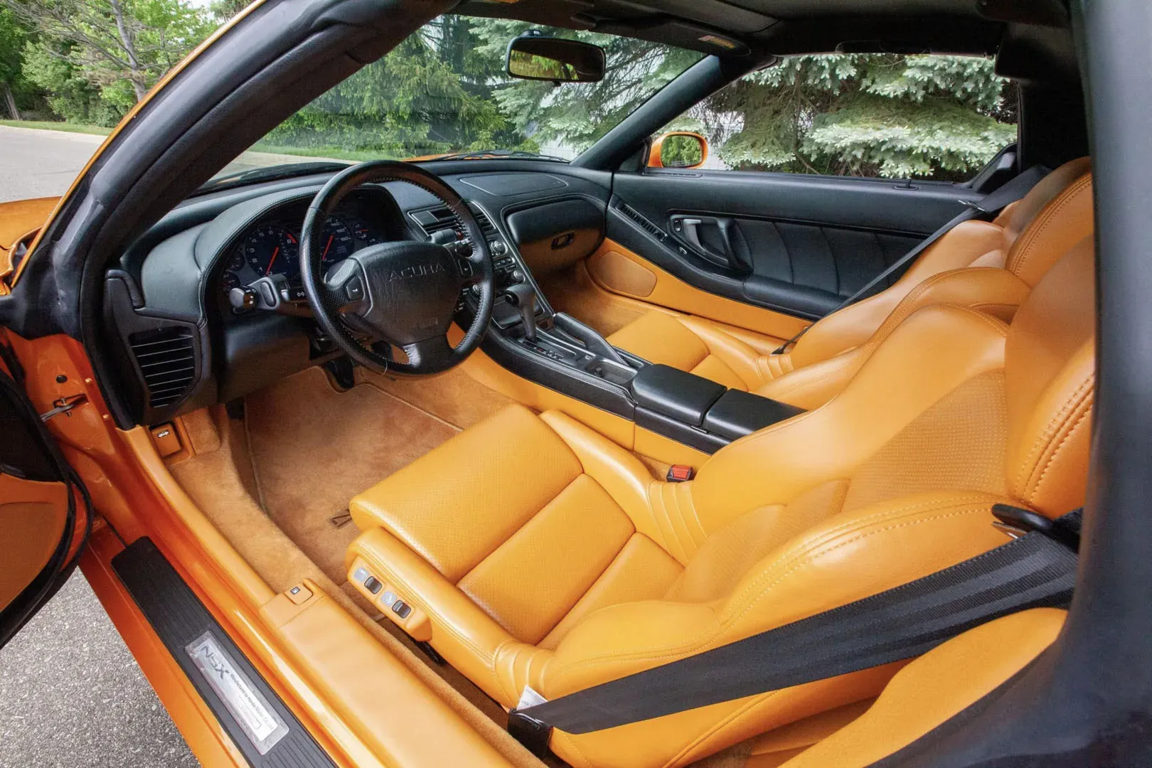 Finished in Imola Orange Pearl over a matching orange leather interior, the car represents one of just 49 NSXs painted in this color across the model’s entire 15-year production run. What makes this example unique is its pairing with an automatic transmission, making it the only 2002 NSX-T built with this specific combination of exterior, interior, and drivetrain.