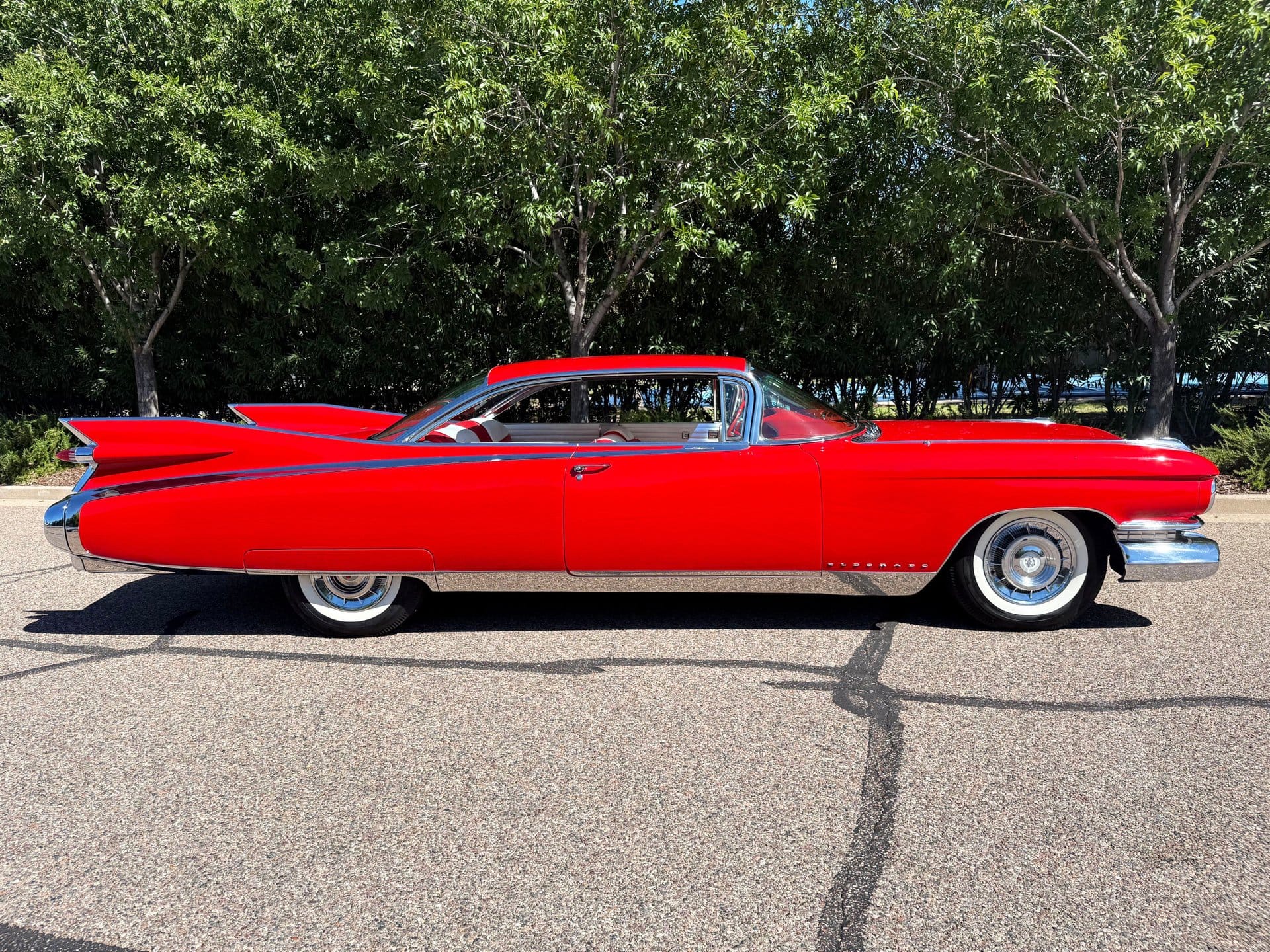 One of just 975 Eldorado Sevilles built that year, this car represents the pinnacle of Cadillac’s design era — a time when fins reached skyward, chrome gleamed endlessly, and luxury knew no restraint. Finished in Seminal Red with a matching red-and-white genuine leather interior, the coupe exudes presence. Every inch has been restored to show-quality condition, from its mirror-gloss paint to the flawless chrome that wraps around its dramatic lines.
