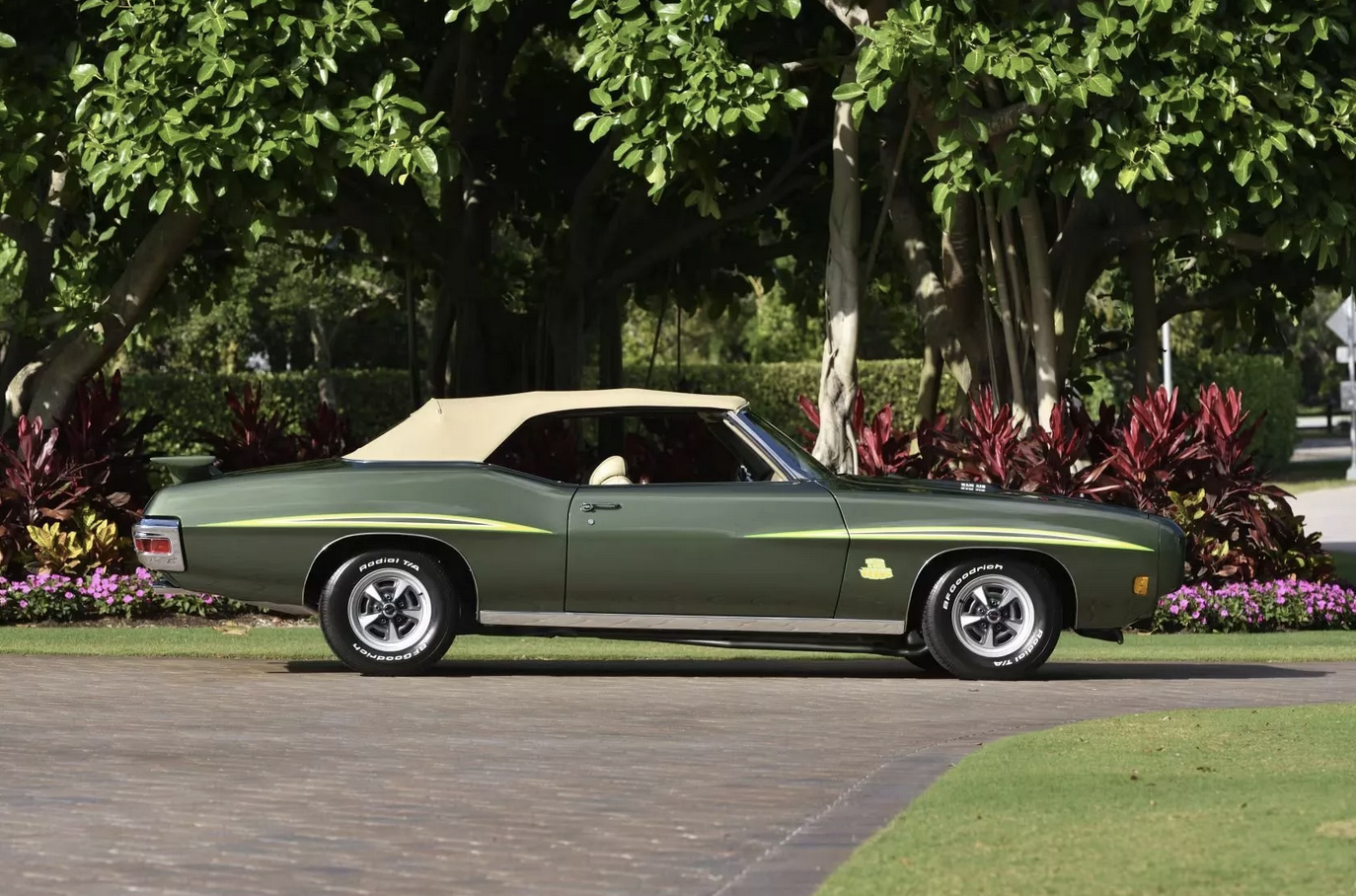 Under the hood, it’s powered by a 400-cubic-inch (6.6-liter) V8, paired to a four-speed manual transmission. This Ram Air III powerplant produced 366 horsepower (SAE gross), providing plenty of punch in its day, along with the kind of visceral rumble that defined the golden age of muscle cars.