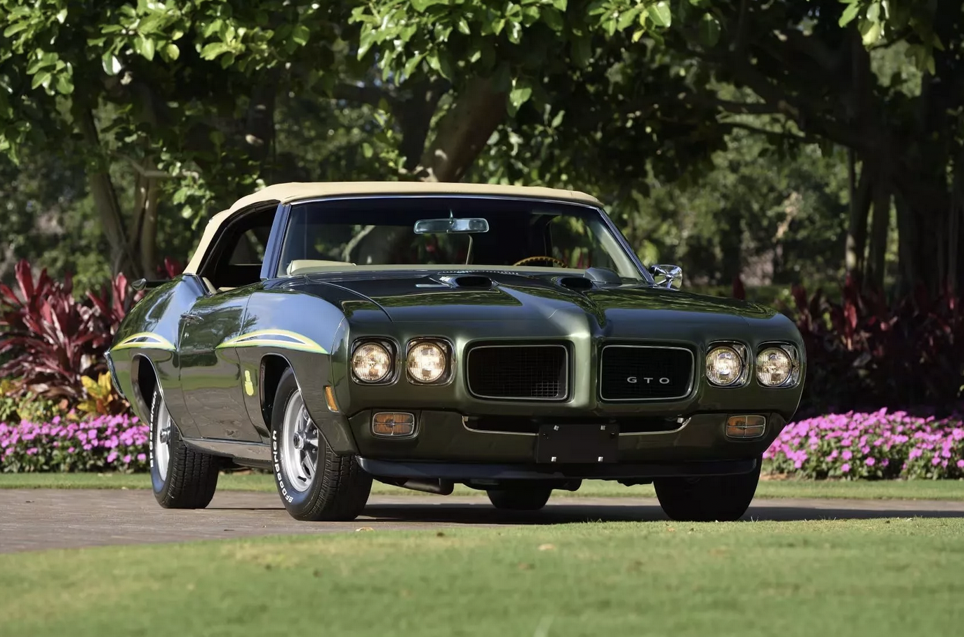 Finished in Pepper Green with a light tan convertible top, this rare Judge is one of only 168 Ram Air III four-speed convertibles produced for the 1970 model year. With its odometer barely ticking past delivery mileage, it remains in near-factory condition—making it one of the lowest-mileage GTO Judges known to exist.