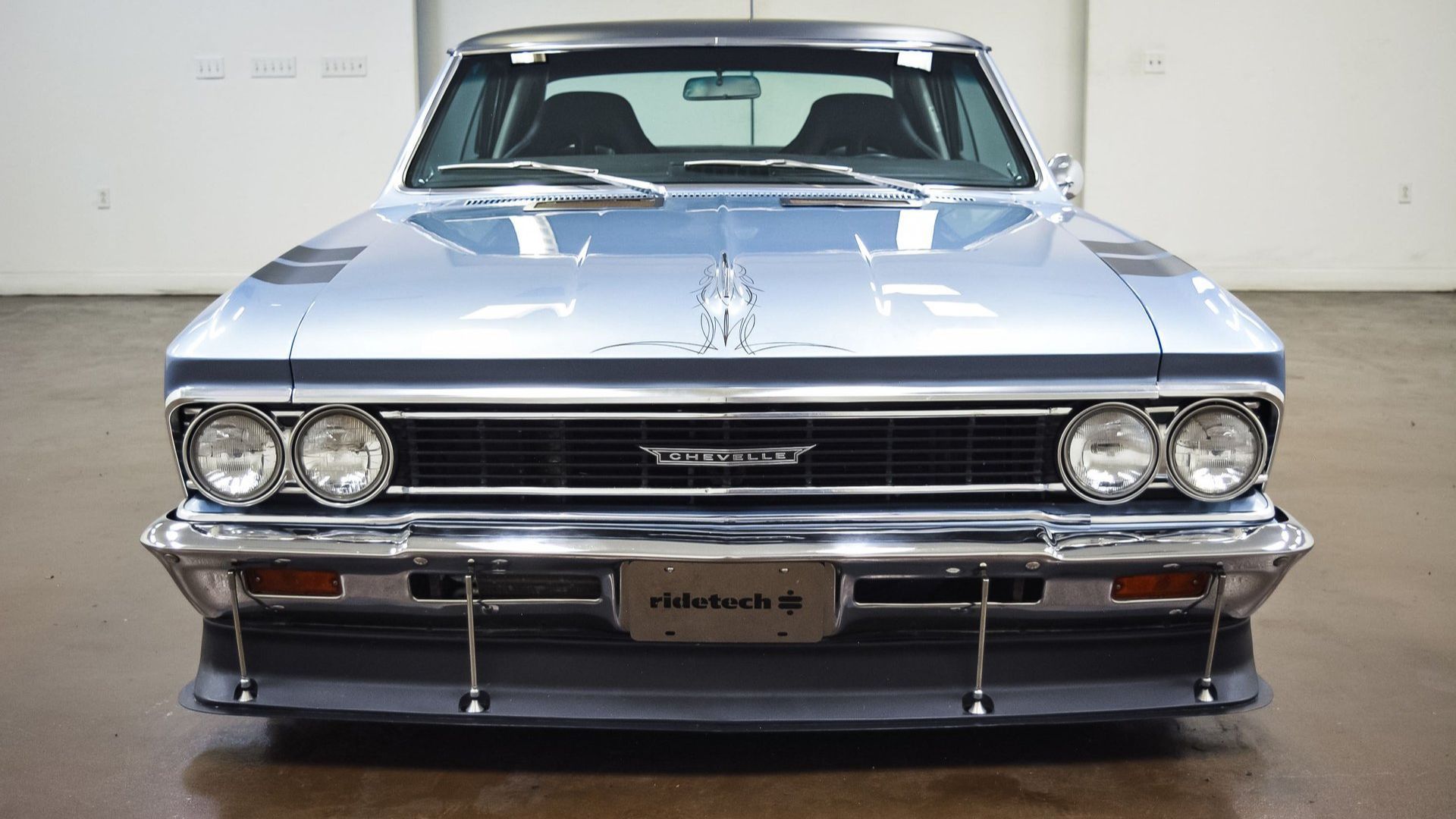 Plenty of chassis mods help this Chevelle Malibu handle tightly and stop with greater precision. Among the many mods are RideTech tubular control arms, RideTech StrongArms suspension, RideTech Shockwave air springs, RideTech air ride suspension, RideTech LevelPro Max air ride control, and RideTech front/rear sway bars. There are drilled and slotted rotors at all four wheels, plus 6-piston calipers for serious braking force.