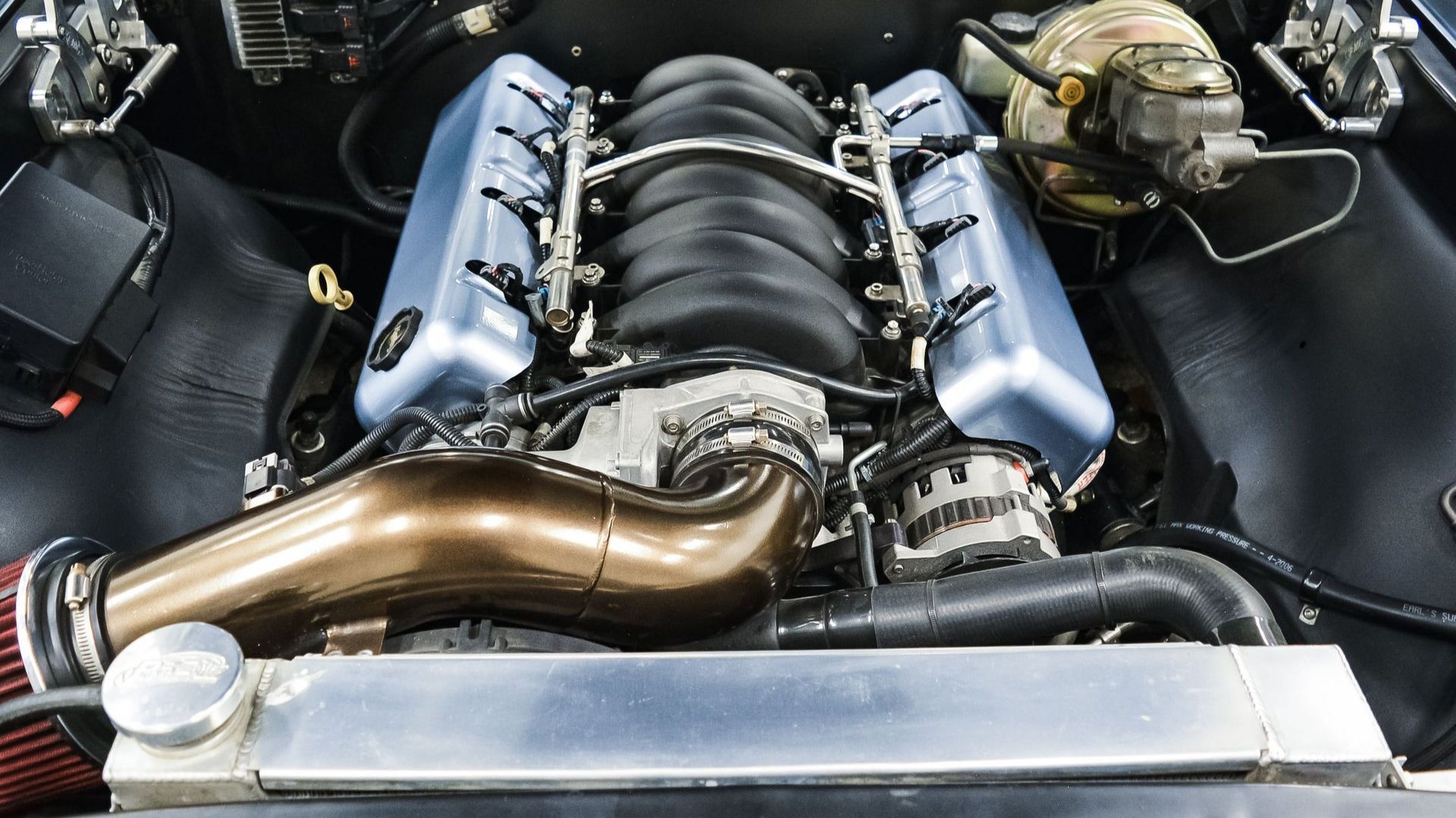 Having a gorgeous, head-turning car can be a lot of fun, especially if you revel in the kind of attention it brings. This Pro-Touring Chevelle is just such a ride, thanks to the aggressive modifications to the exterior, like the wild custom front splitter and those cool 18-inch CCW Classic wheels tucked nicely into the wells. That combined with the nice blue exterior, intricate pinstriping on the hood, and dual front fender hash marks like what you see on some of the Corvette Grand Sports makes for quite the statement. However, this car isn’t writing checks it can’t cash.