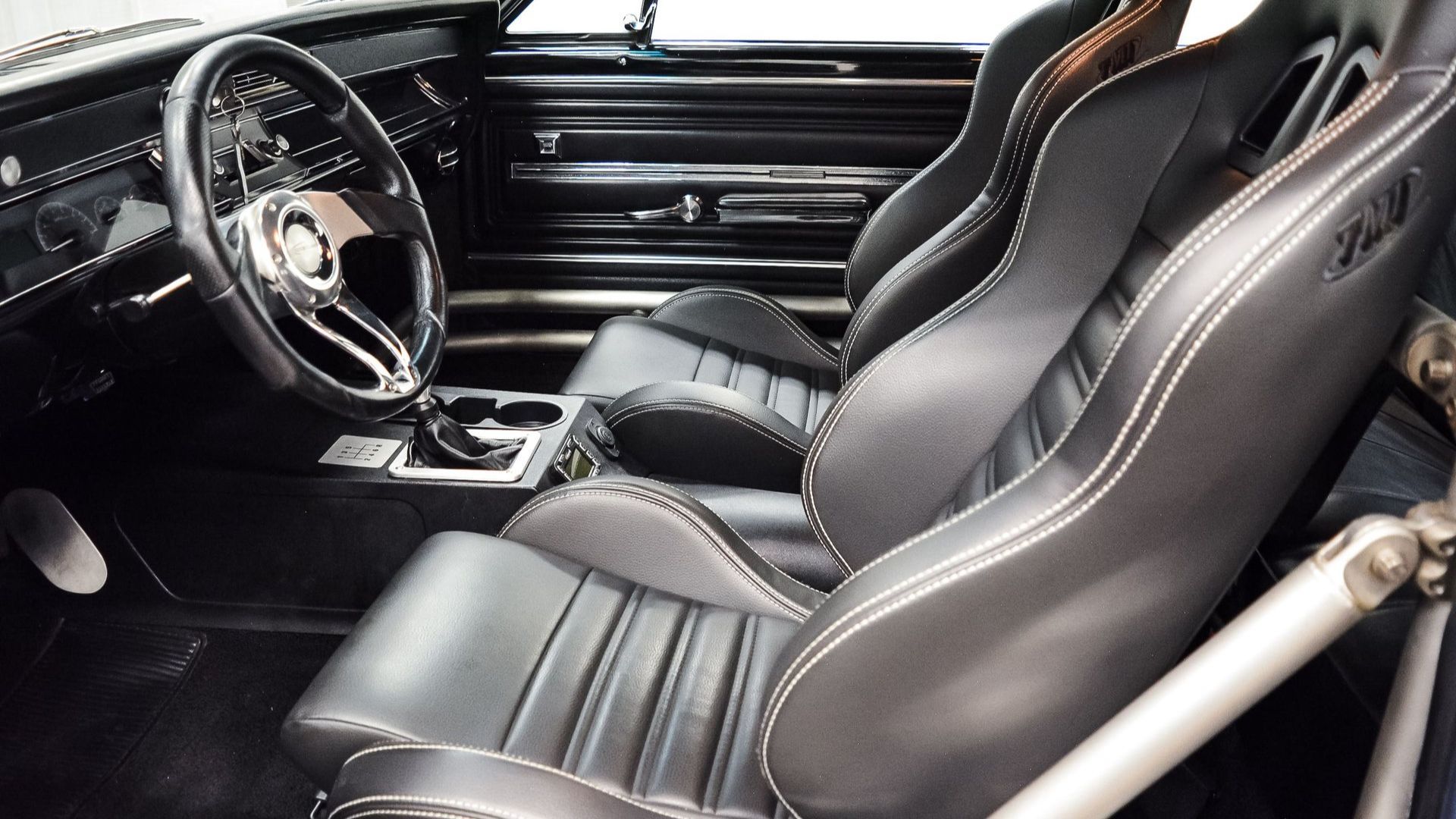 The interior certainly wasn’t overlooked. As you can see through the windows, there’s a RideTech Tiger Cage roll cage so hopefully you can satisfy your local track’s safety standards. Vintage Air heat and A/C should help keep you comfortable while cruising at any time of the year. The custom center console contains two cupholders, something you don’t really see in muscle cars from the 60s.