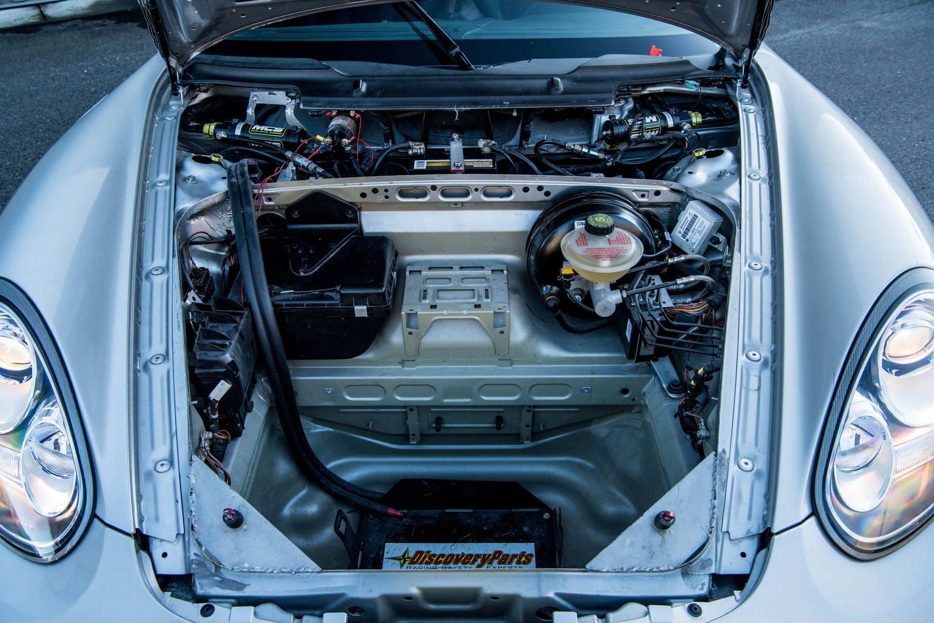 This Cayman is ready to compete in the Porsche Club of America's GTB1 Class, which is a modified class that mandates the factory 3.4-liter engine on the Cayman and the 3.6-liter engine on the 996 and 997 Porsche 911 models. While Porsche's PDK gearbox is allowed in this class (with a weight penalty), this Cayman uses a six-speed manual transmission that has been upgraded with a racing clutch, short-shift kit and the required single-mass ferrous flywheel. For optimal handling, this Cayman has been upgraded with racing components including from Brembo brakes and Tarett suspension, and it also has a carbon fiber splitter and rear wing.