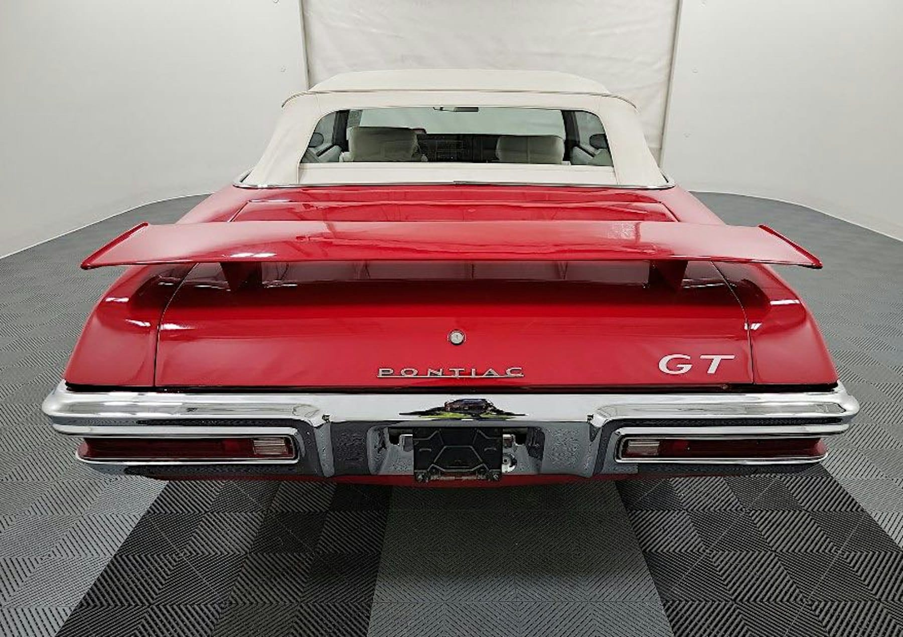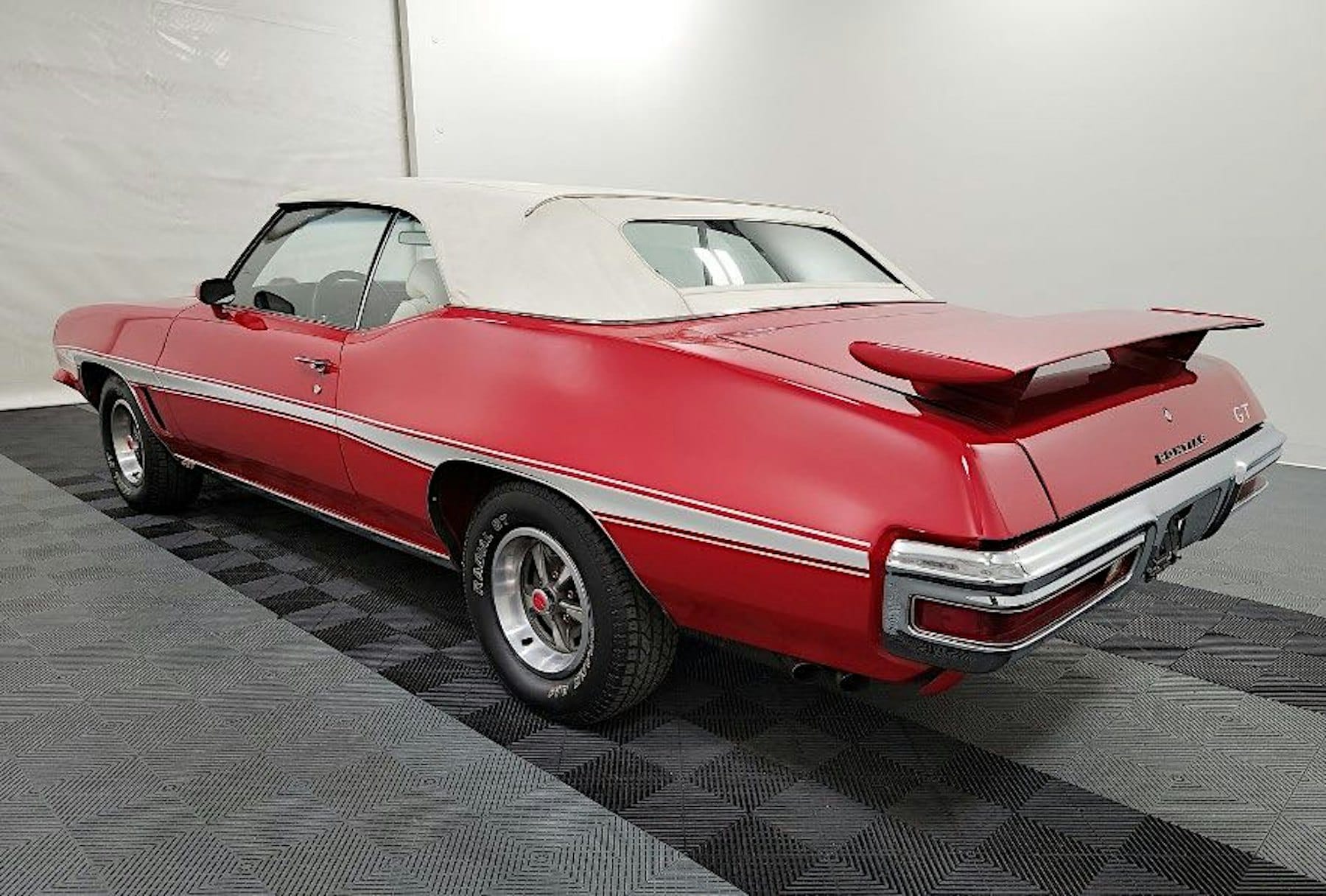 Cardinal Red 1972 Pontiac LeMans Sport GT Convertible restored with a 400 V8, rare GT package, and PHS documentation.