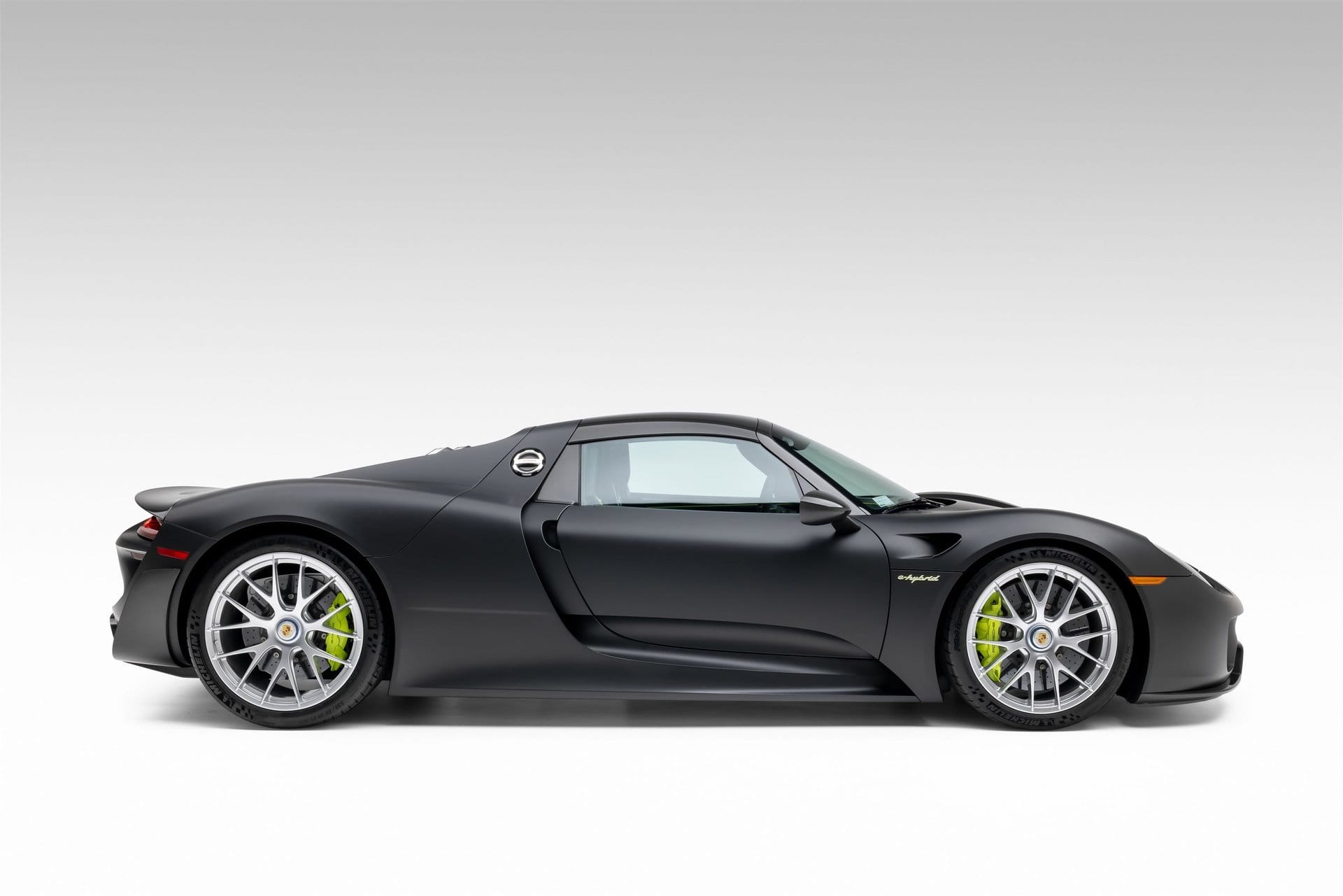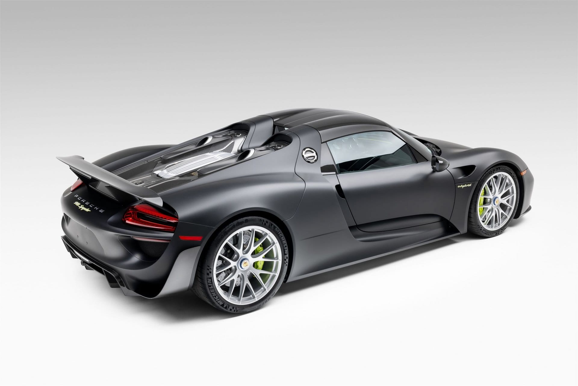 The Weissach Package enhances the 918’s performance-focused design with lightweight construction elements and motorsport-inspired features. The car rides on staggered magnesium wheels measuring 20 inches in the front and 21 inches in the rear. Michelin Pilot Sport Cup 2 tires sized 265/35 and 325/30 help deliver grip and stability under high-performance driving conditions.