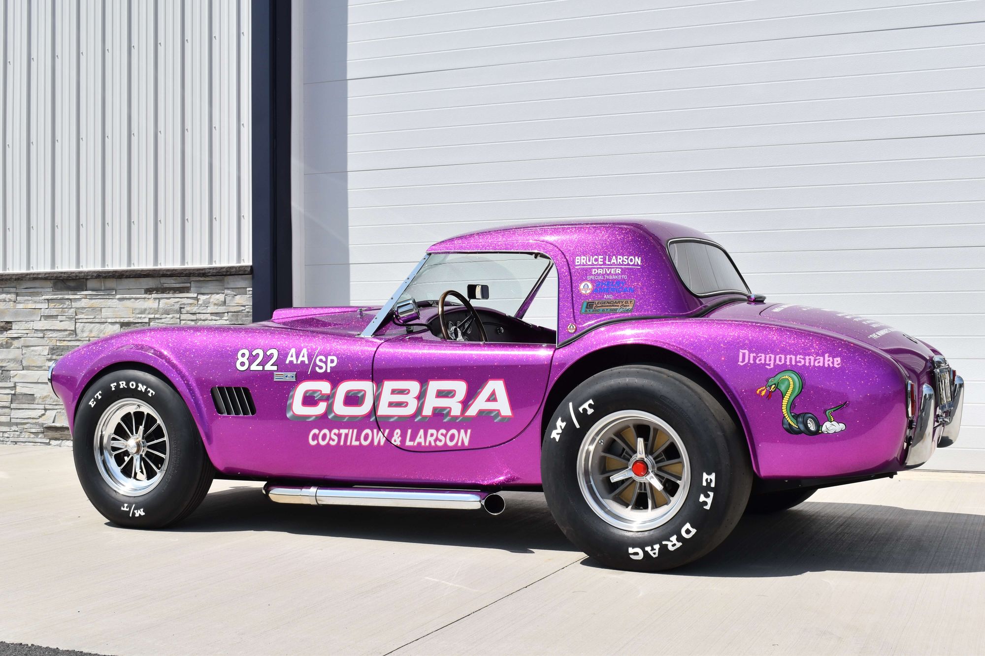 Bruce Larson, NHRA champion and proclaimed "NHRA's original triple-threat Pro driver," is the human epitome of the Dragonsnake's tenacity. Piloting a 289 Dragonsnake, Larson dazzled crowds and shattered records at several national events in 1963 and 1964. Although Larson eventually switched to Chevrolet, the Cobra's legacy in drag racing was set in stone, or perhaps, etched in drag-strip rubber.