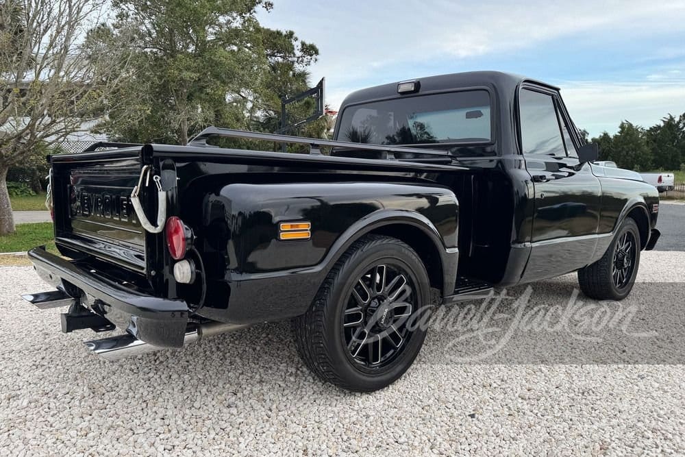 A freshly restored 1972 Chevrolet C10 stepside features a 350ci crate engine, lowered stance, and custom leather interior.