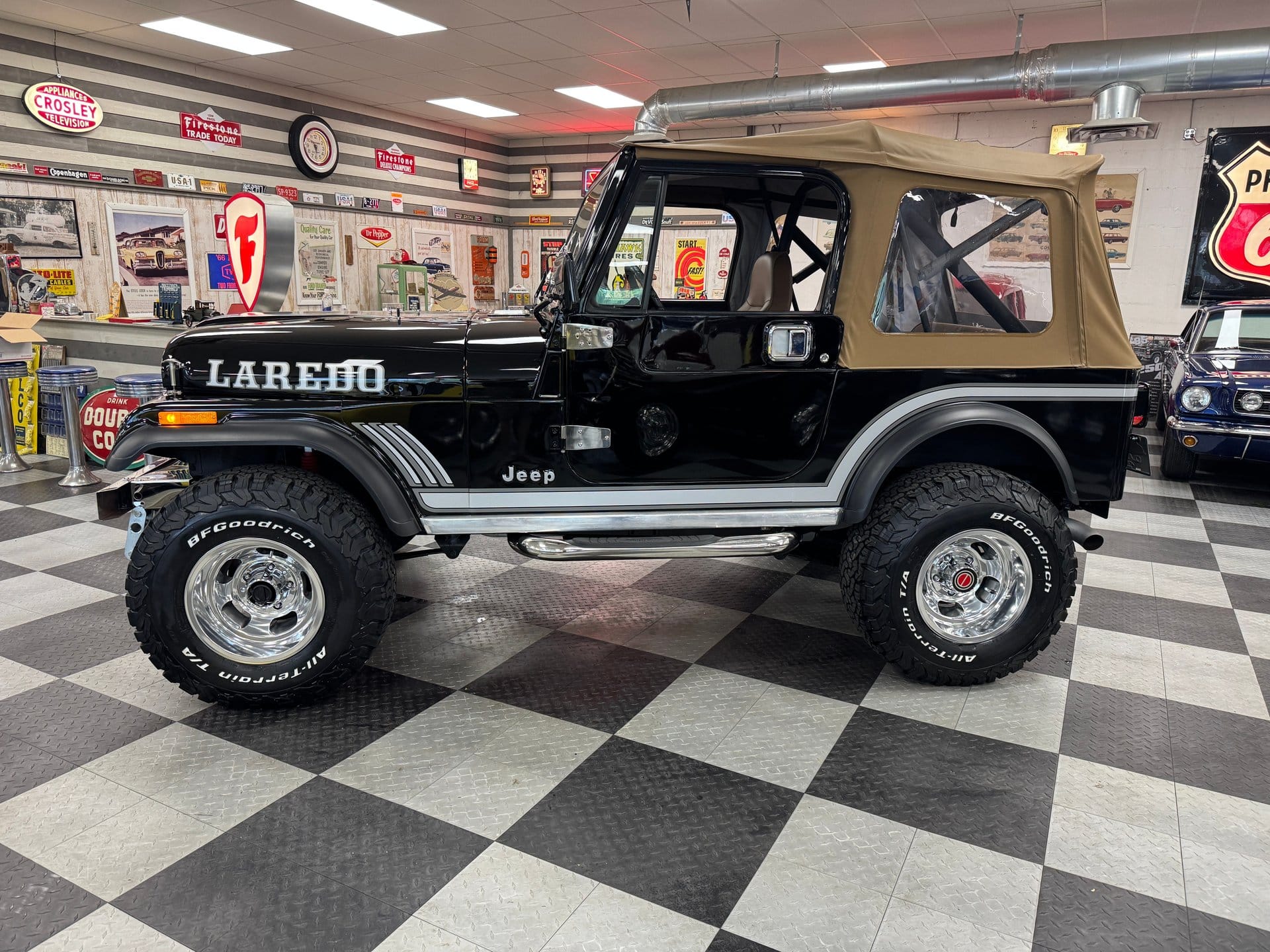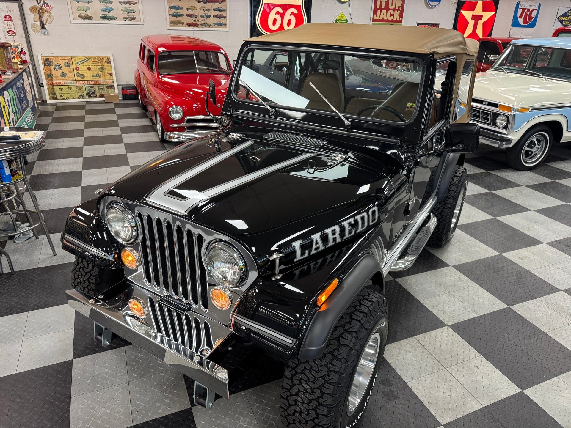 Comfort hasn’t been forgotten in this rugged build. Inside, the Jeep features a Tan Bestop interior with matching Bestop soft top, and a Vintage Air conditioning system keeps things cool during summer adventures. The CJ retains much of its original Laredo character while benefiting from tasteful modern enhancements throughout.