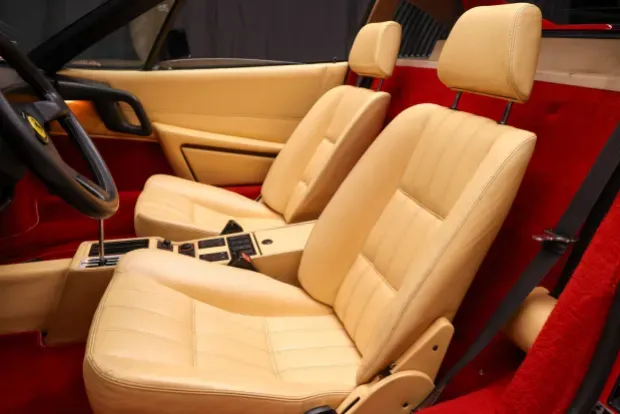 The Ferrari showcases a 3.2-liter V8 engine paired with a five-speed manual transaxle, a combination that promises an exhilarating driving experience. It is equipped with a limited-slip differential and features such as 16″ five-spoke alloy wheels, ventilated four-wheel disc brakes, and a gated shifter enhance its allure and performance. The car has been meticulously maintained, with a recent belt service in 2022 and a thorough front brake service in preparation for sale, underscoring the care it has received throughout its life.