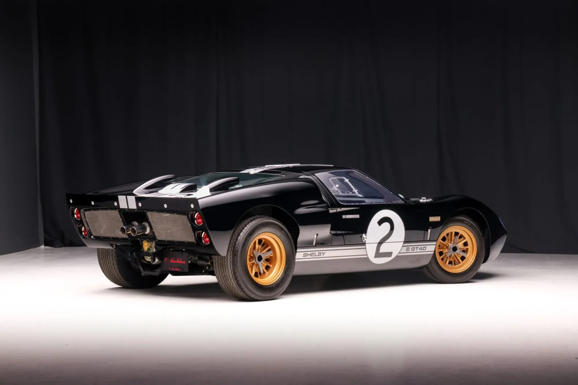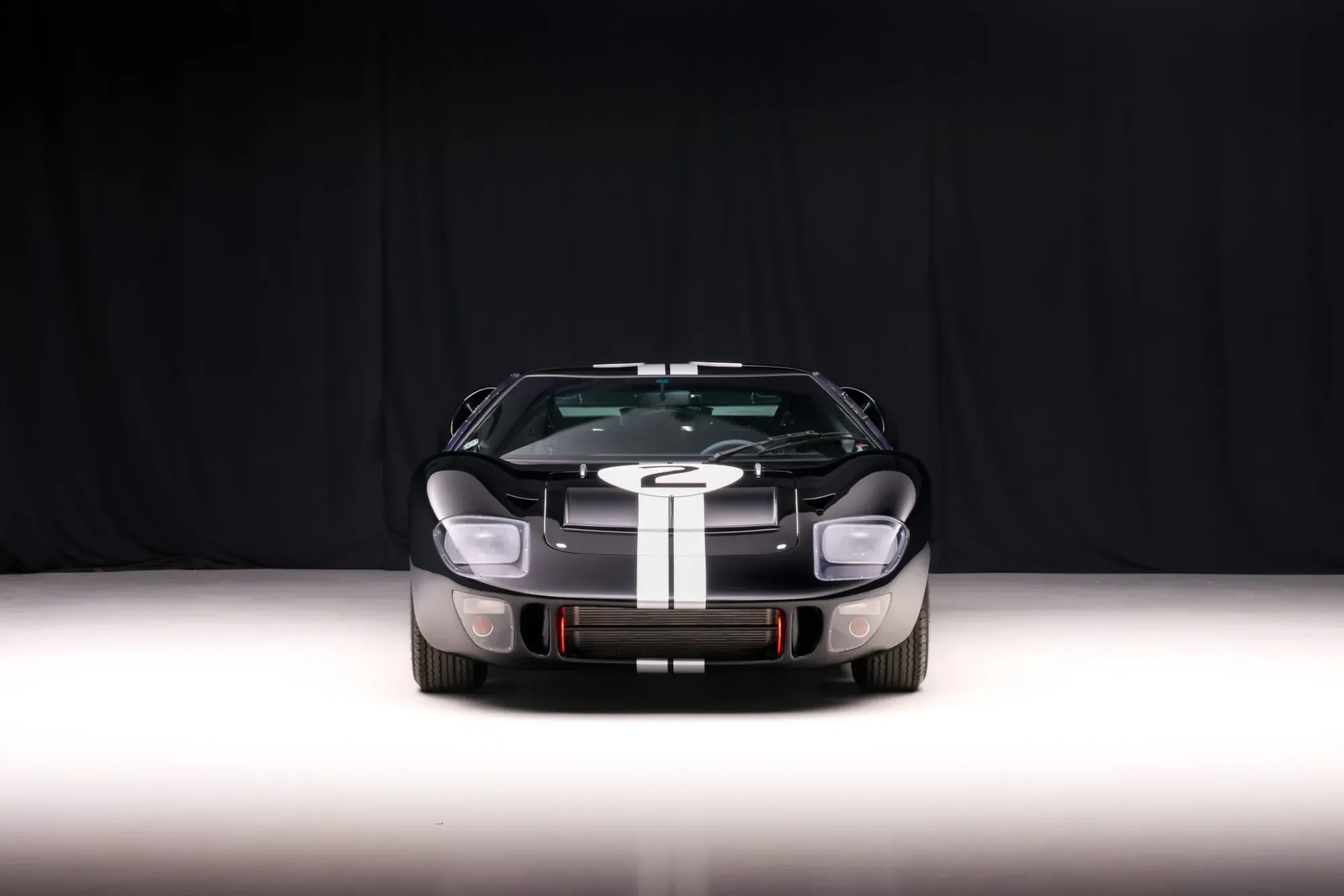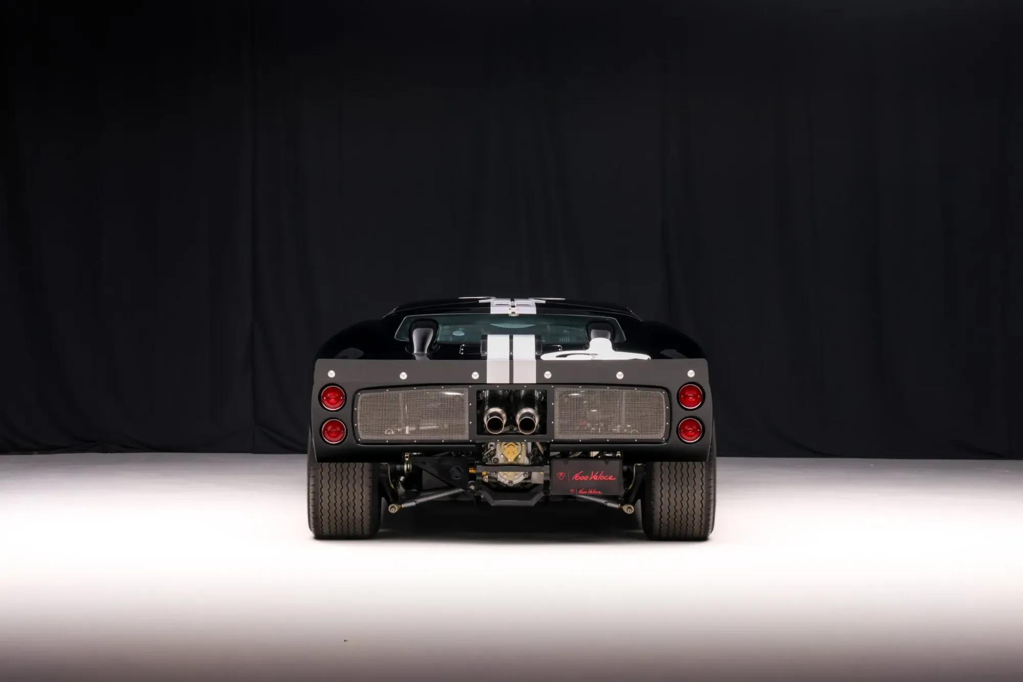 What sets this GT40 apart is its status as one of only 50 in existence worldwide, making it an exceedingly rare collector's item. Its livery pays homage to the #1046 Ford GT40 that clinched victory at Le Mans, complete with black-finished fiberglass bodywork, silver stripes, and painted white #2 roundels.