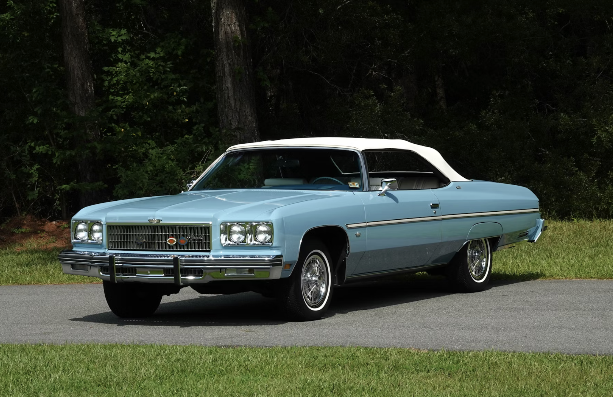 A remarkably preserved 1975 Chevrolet Caprice Classic Convertible has surfaced as one of the standout entries in this season’s Raleigh Classic Auction in Zebulon, North Carolina. Showing just 17,762 miles, the full-size convertible represents the final chapter of Chevrolet’s open-top heritage and one of the last true American cruisers of its kind.