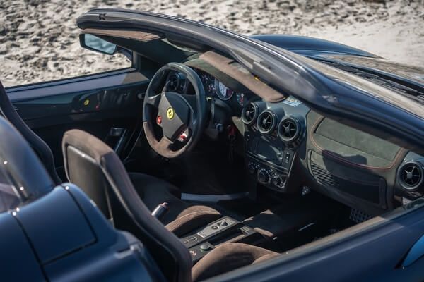 Weighing in at around 200 lbs less than the standard Ferrari F430 Spider, this incredibly powerful car is a violent ride. This is contrasted beautifully by the tastefully crafted exterior which reflects a smooth and sleek sports car. Transferring all of that power is a very unique F1 SuperFast 2 automated manual transmission. Of course, this is something you don't see every day which is exactly what makes the car such a desirable performance car for any enthusiast with passion for racing culture. Finally, you have the convertible top which makes this car even better as you can feel the wind on your face as you rocket to nearly 200 miles per hour. This is a scary but fun thought for sure which is why it takes a special individual to own this incredible Italian supercar.