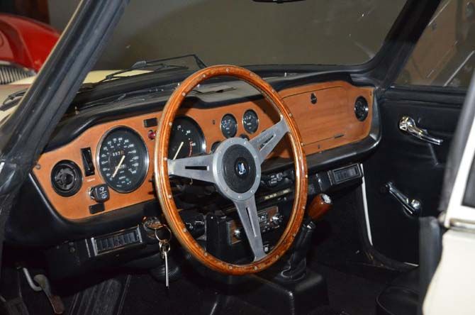 As clean of a condition as this TR6 is in, what really makes it special is the factory dual top setup. While top-down driving is the best way to enjoy a TR6, the like-new soft top is always handy when bad weather pops us, and the paint-matched hardtop ensures that the TR6 can still be driven in the colder months.