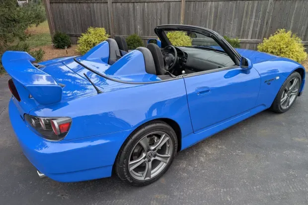 This S2000 CR has a unique backstory. It remained in the possession of American Honda Motor Company until late 2019, when it was awarded to an employee. The current seller acquired it in 2021 and has added only minimal mileage since. Like all CR variants, the car features a distinct aerodynamic package, additional chassis bracing, sport-oriented suspension tuning and a removable hardtop paired with a tonneau cover in place of the standard soft top.
